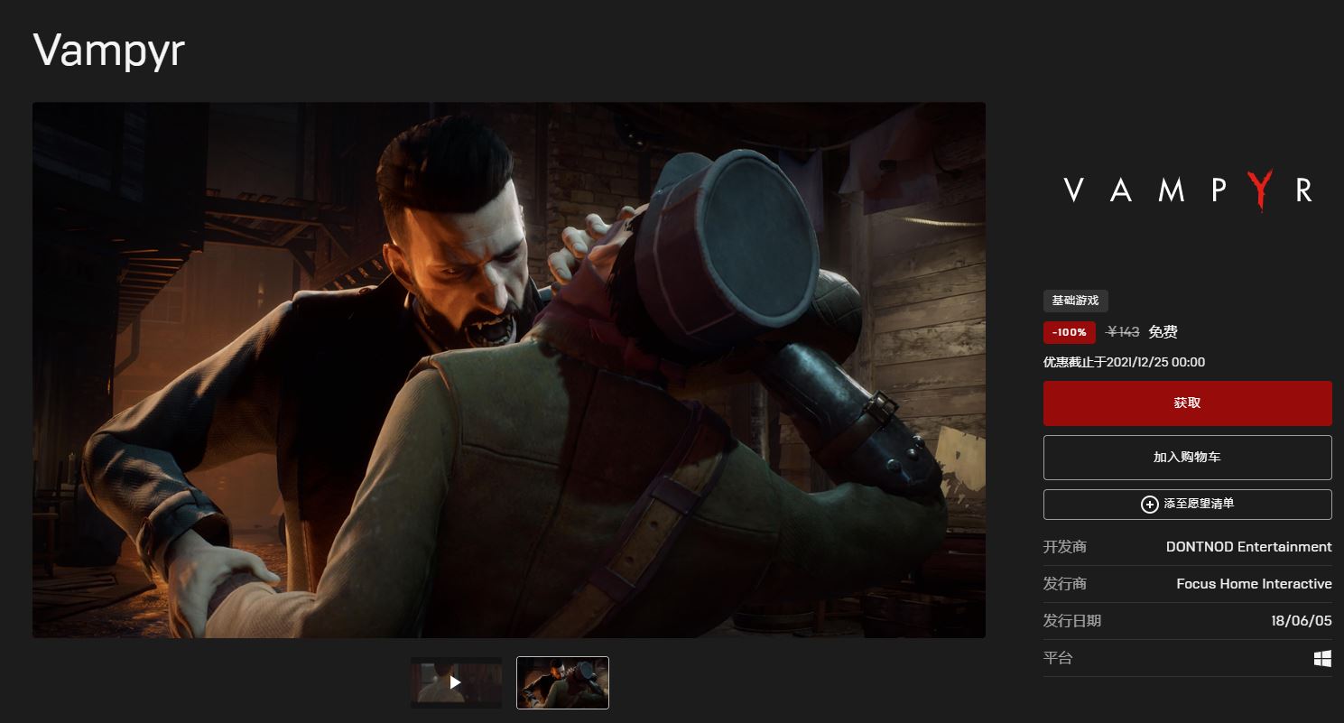 Epic将连续15天送15款不同的游戏,今天是第8款一款动作角色扮演游戏,伦敦,1918年。您是一个刚刚转化为吸血鬼的医生,名叫JonathanReid。作为一名医生,你必须找到一种治疗方法,解救饱受流感折磨的市民们。作为一名吸血鬼,你的...