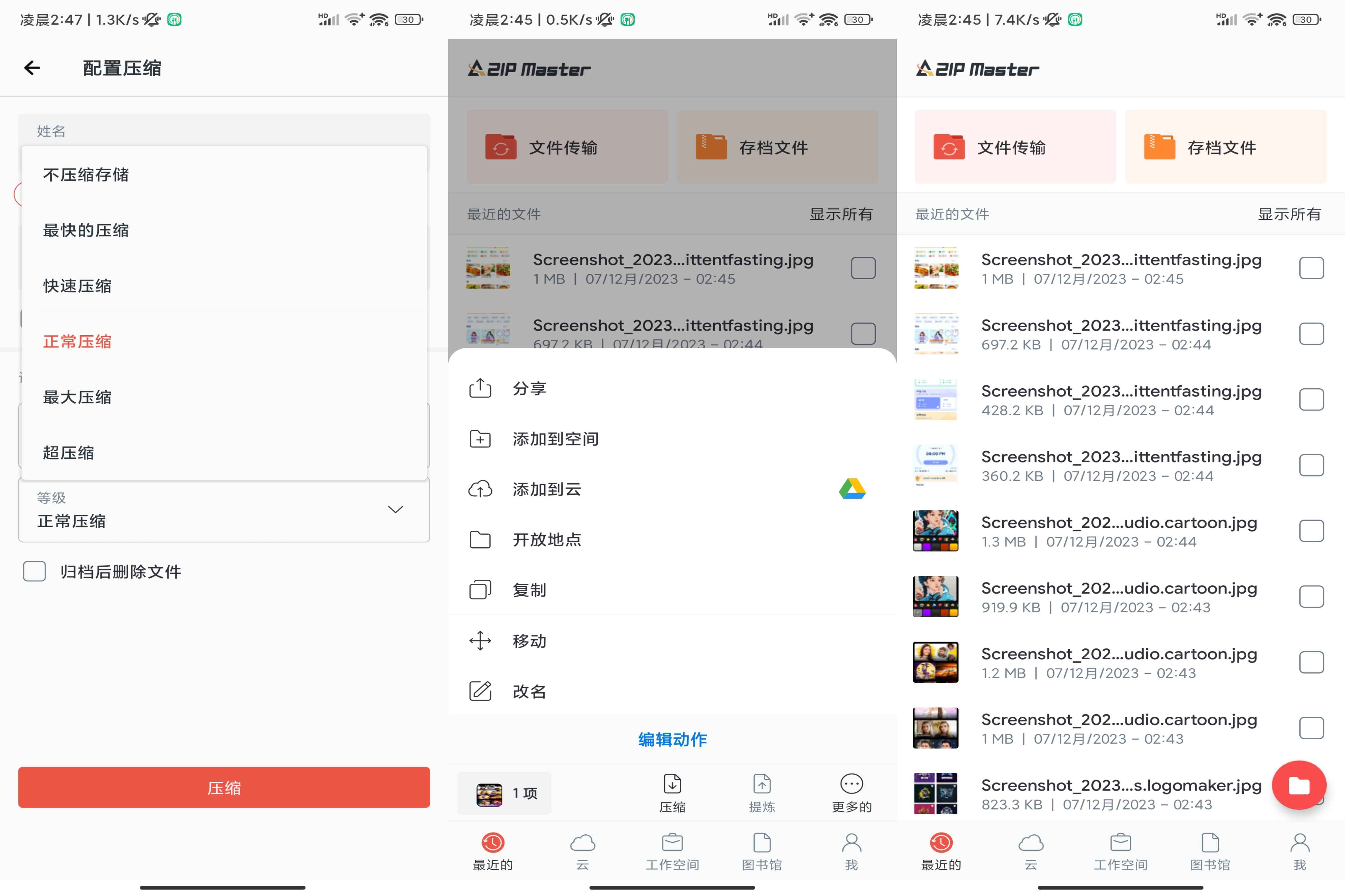 一款超好用的手机文件压缩工具,软件能够在线压缩各种文件,视频,文件,音乐等等都能在线压缩,非常方便好用,还能一键传输,设置密码保护你的文件安全等。(解锁VIP功能)