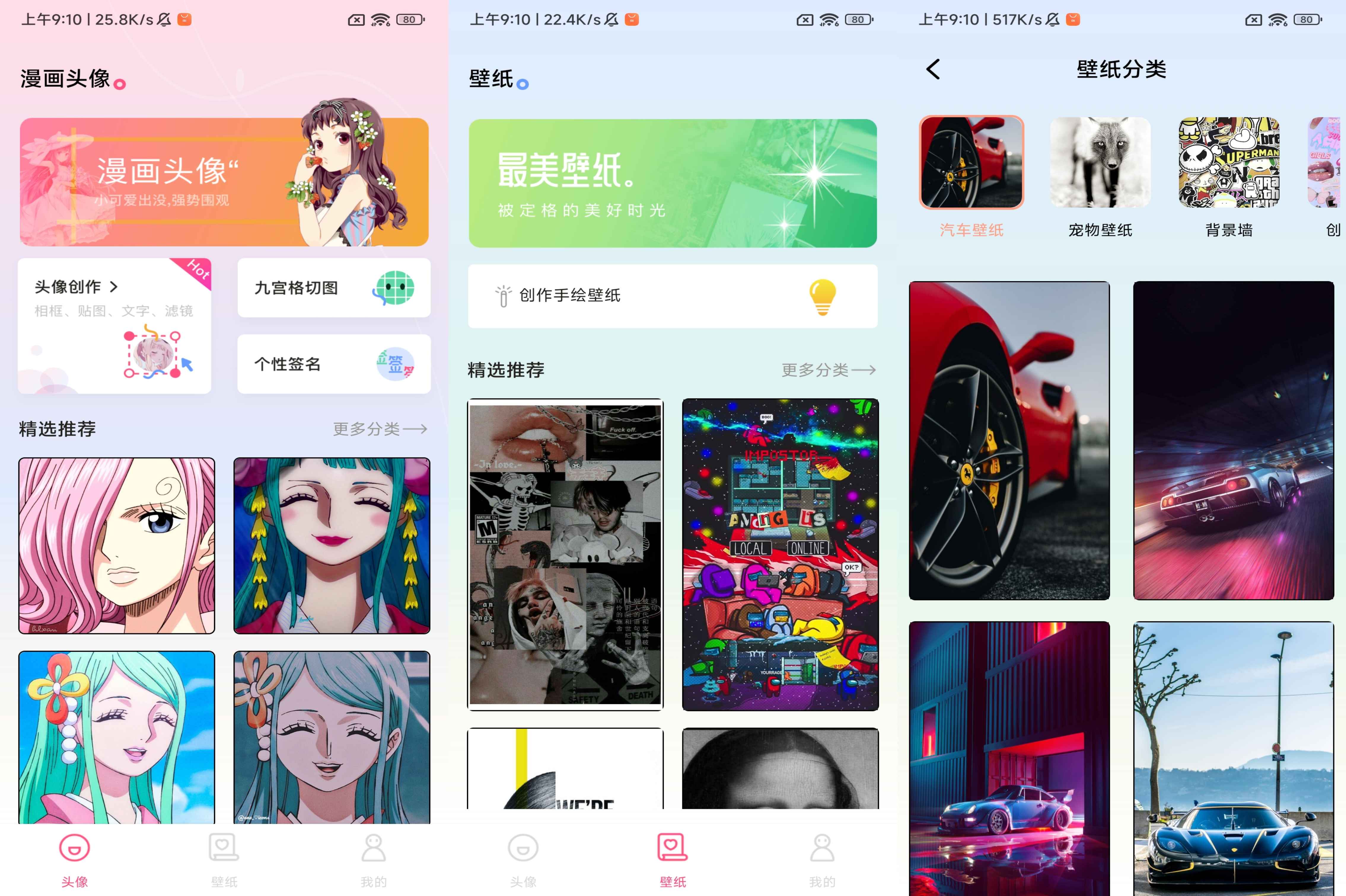 2、软件提供超多的头像素材,情侣头像、男生头像、女生头像、动漫头像;