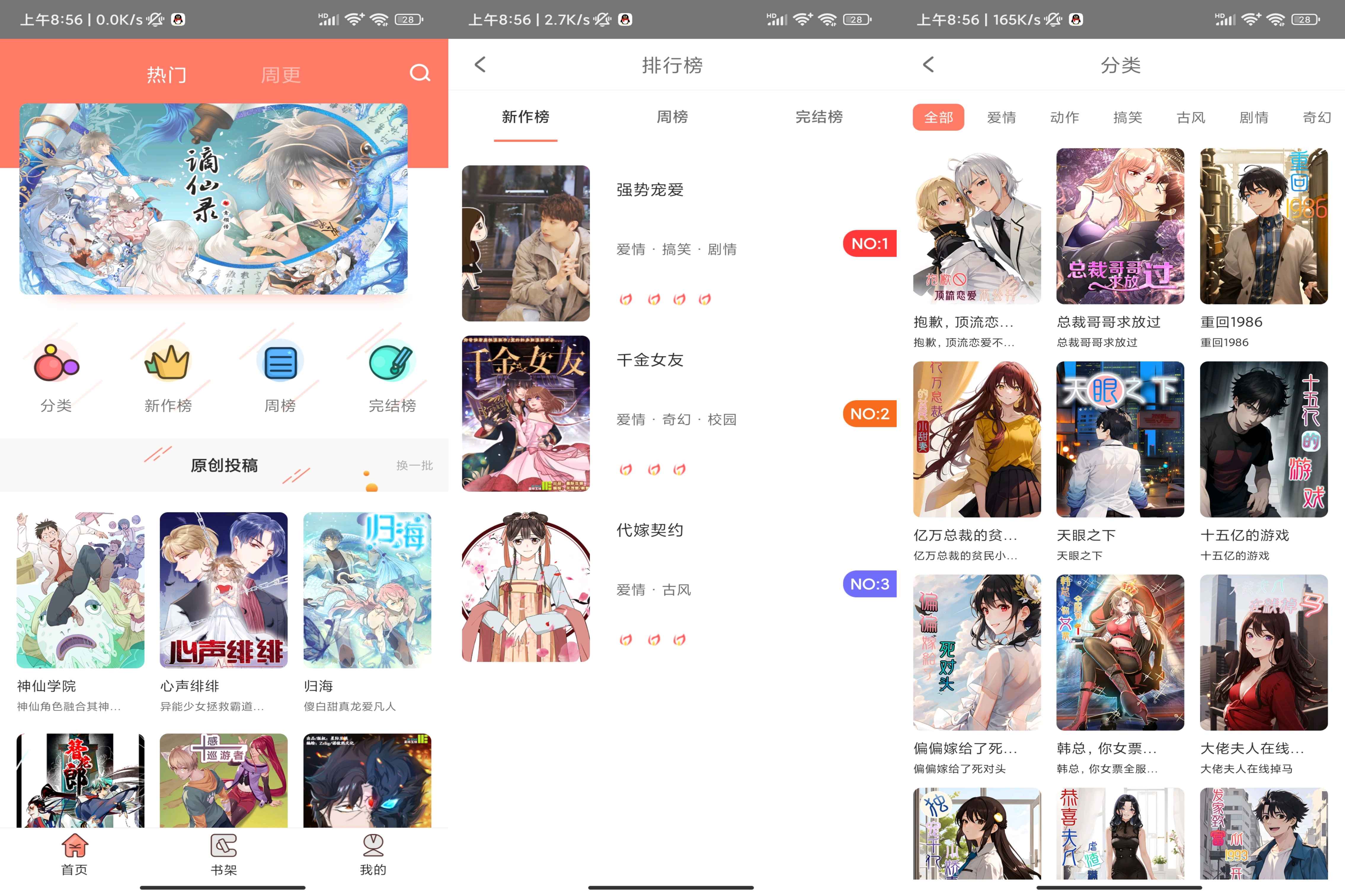 一款内容非常精彩的漫画阅读软件,所有的漫画画质都非常清晰,全部都是全彩高清画质,给用户带来极佳的漫画阅读体验。每天都会实时更新超多最新的漫画内容,各种海内外漫画等你看,划分了多种的漫画类型,各种漫画应用尽有。(去除广告功能)