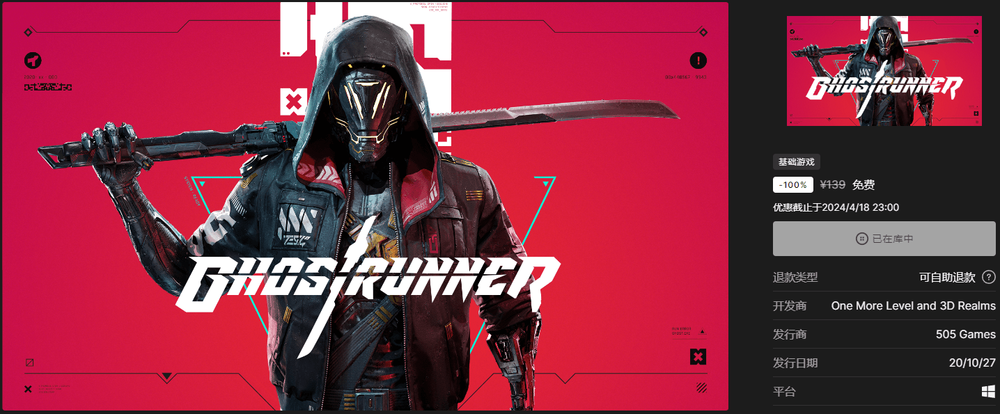 领取地址:https://store.epicgames.com/zh-CN/p/ghostrunner
