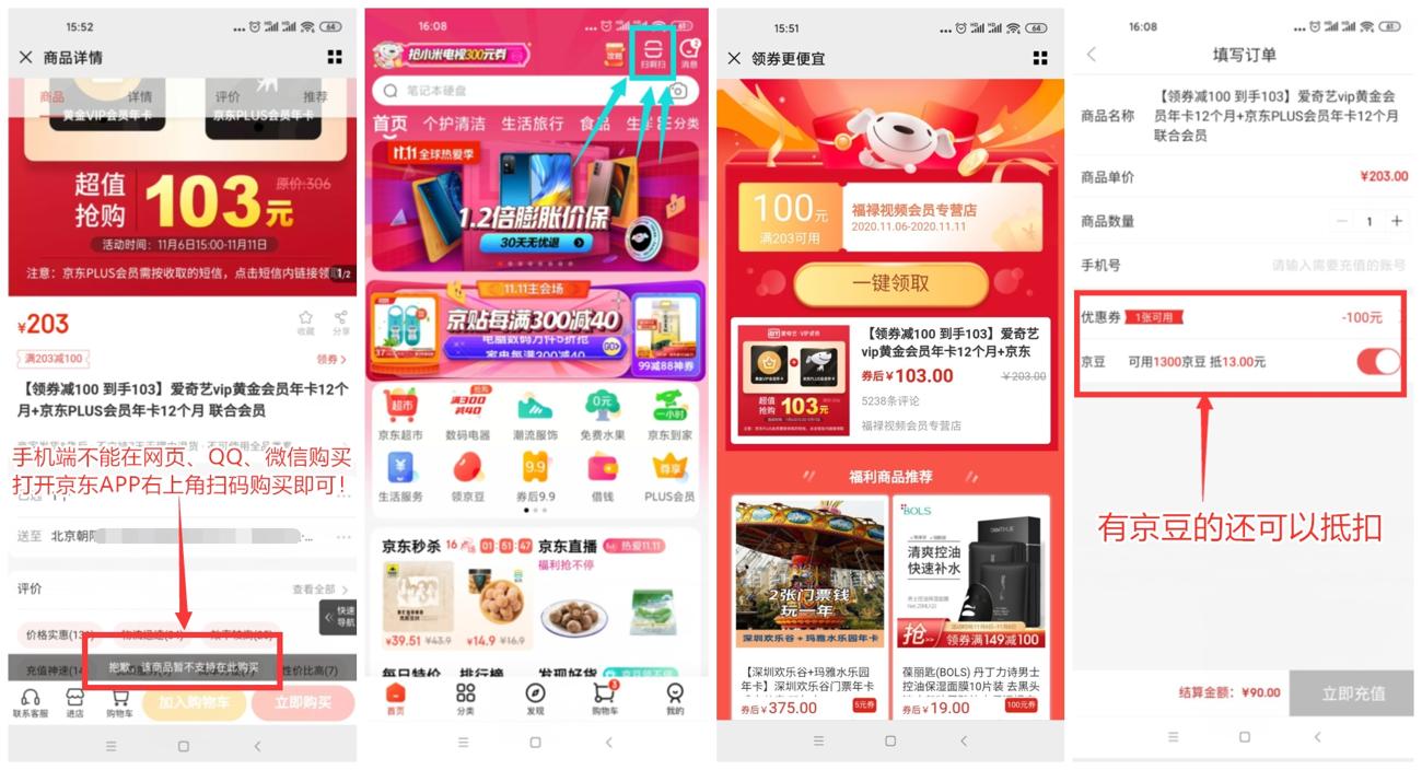 爱奇艺双11提前大促,现在买爱奇艺年卡免费送京东会员年卡,还可以用京豆抵扣更低价!