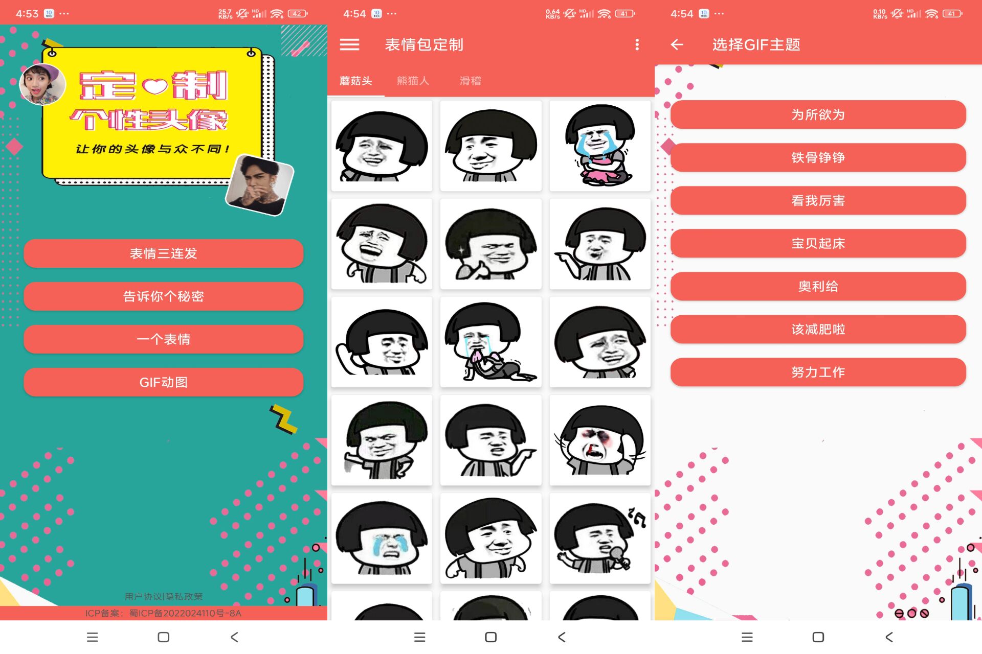 一款聊天必备的斗图神器,可以自定义各种有趣的表情包,与朋友一起在线斗图,超多丰富的diy素材免费使用,帮你定制多种有趣表情。(解锁去广告)