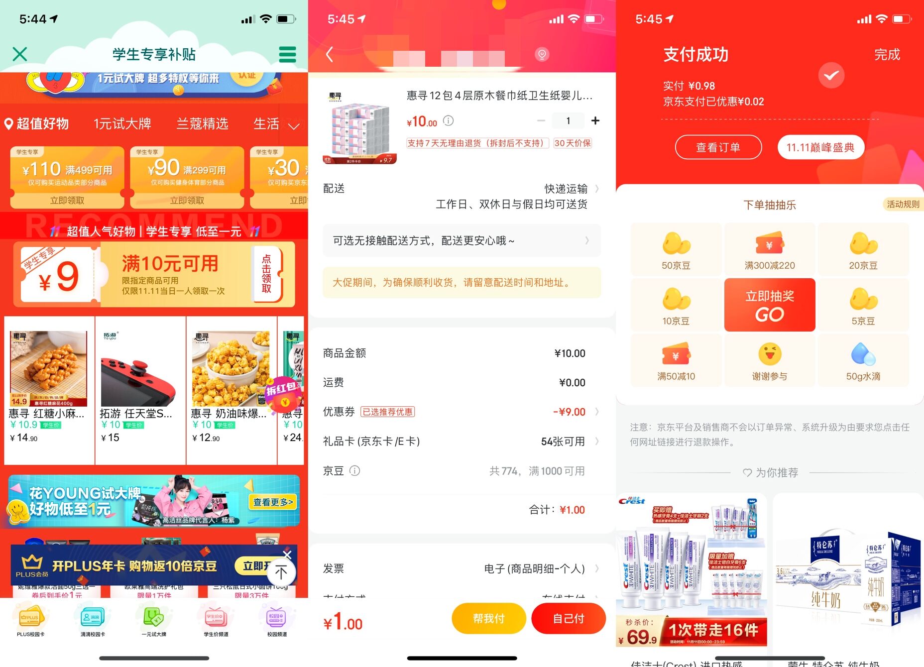 PS:领包地址人人可领!但是券只能京东学生领,会员1元撸,实物:券+累计的红包基本1分撸!