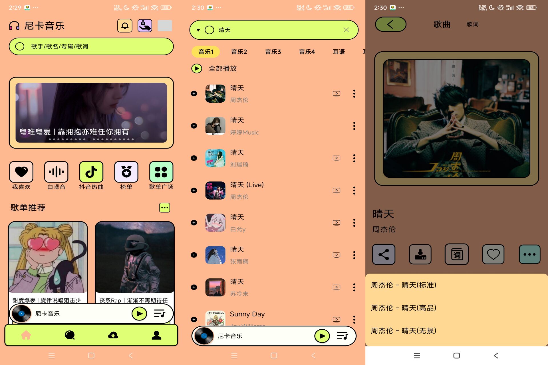 一款免费音乐听歌软件APP!聚合了六大音源曲库、歌单、排行榜,支持在线试听、无损下载以及高清MV播放等等。(解锁VIP)