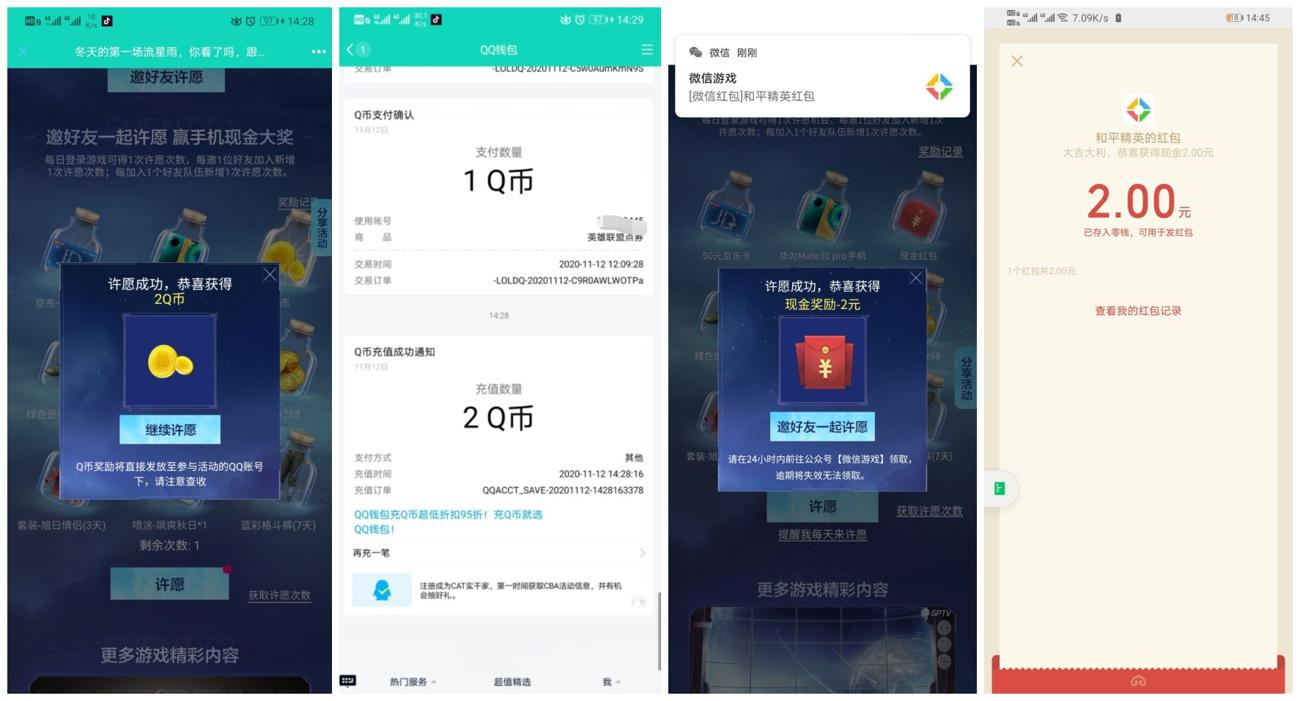 和平精英许愿抽2元红包Q币