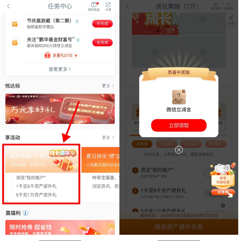 工行APP搜索“任务中心”->享活动“更多”->成长集趣->简单浏览集卡抽1~10亓立减金
