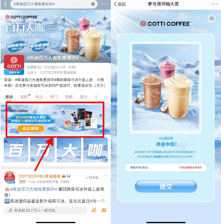微博打开地址->点击话题进入->简单转发得3次机会,只有中免单券才有用