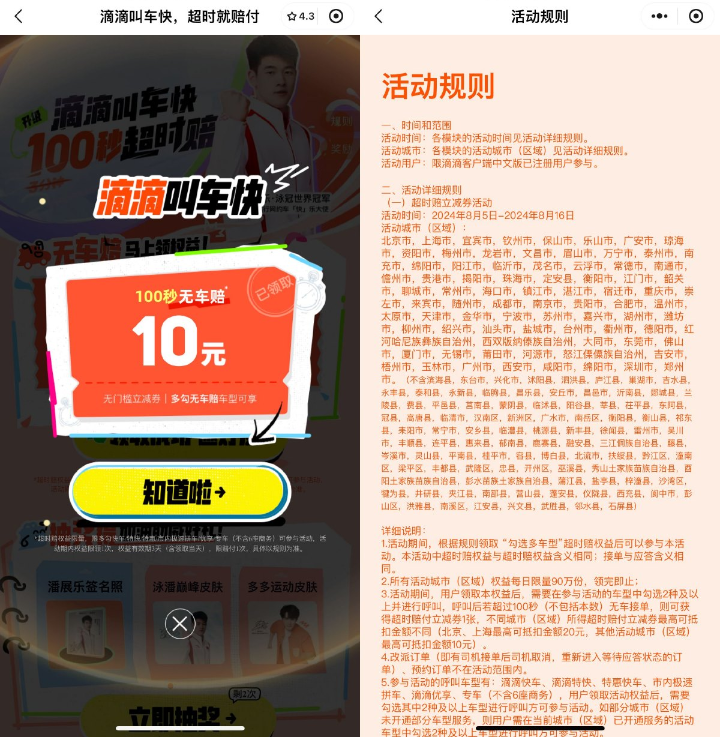 滴滴打车100秒无车领取10亓券