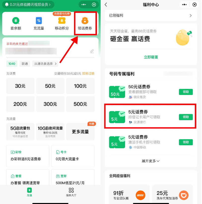 微信打开活动->右上角“领话费券”->直接领交行2~5亓话费券,限量75万份