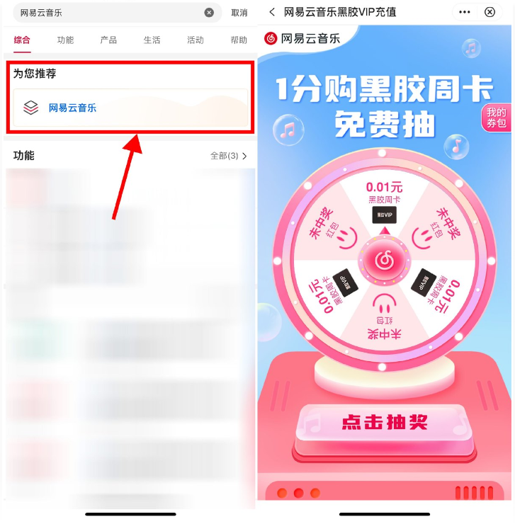 中行APP搜索“网易云音乐”->每月1次机会抽0.01亓黑胶会员周卡