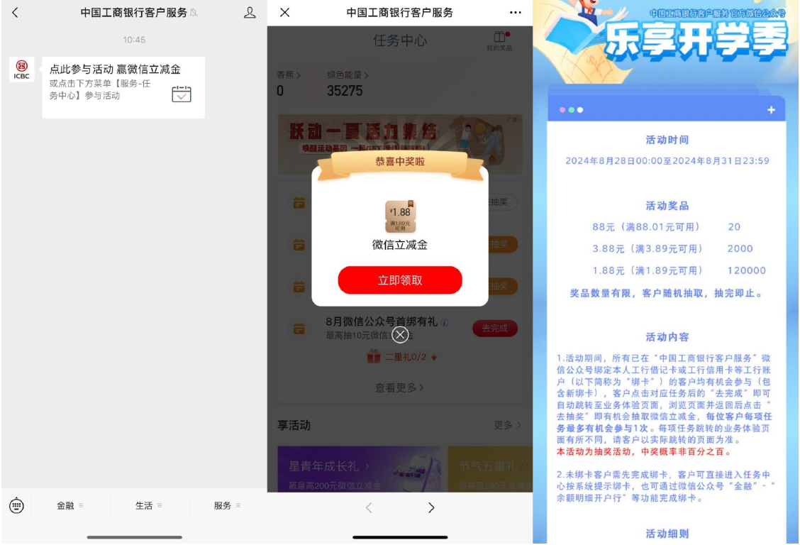 微信打开活动->点击推文进入->点击活动浏览一下,抽1.88~88元立减金