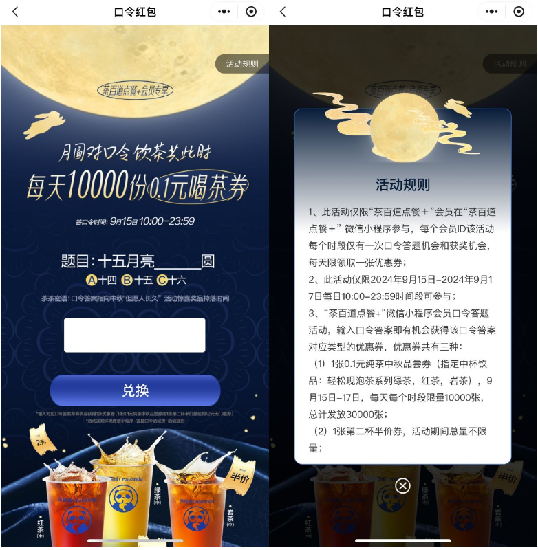 茶百道猜口令抢0.1亓喝茶券