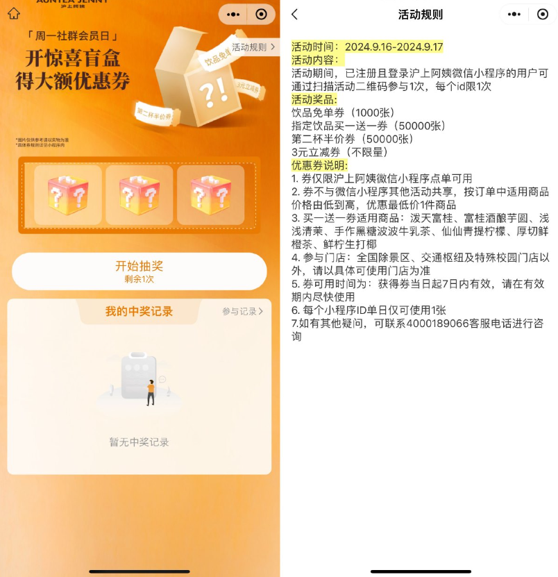 微信打开活动->有1次机会直接抽免单券或买一送一券