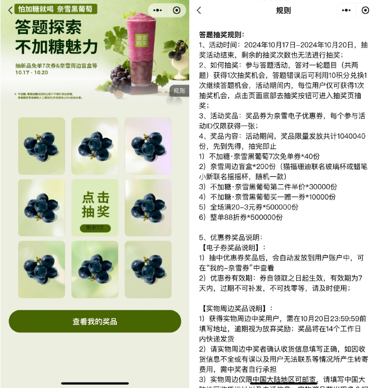 微信打开活动->多选“ABCD”单选“C”,直接抽黑葡萄新品买一送一券