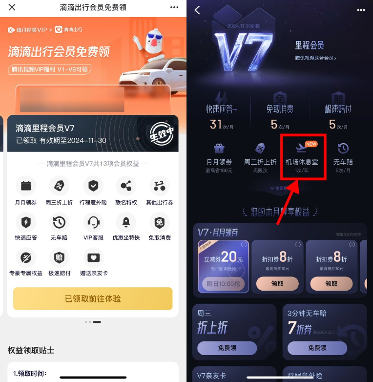 ps:其中滴滴里程V7、V8会员可领机场休息室1次,用不到可以丢某鱼卖50亓左右