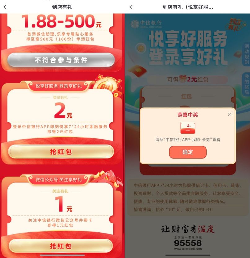 中信银行领取2亓支付宝红包