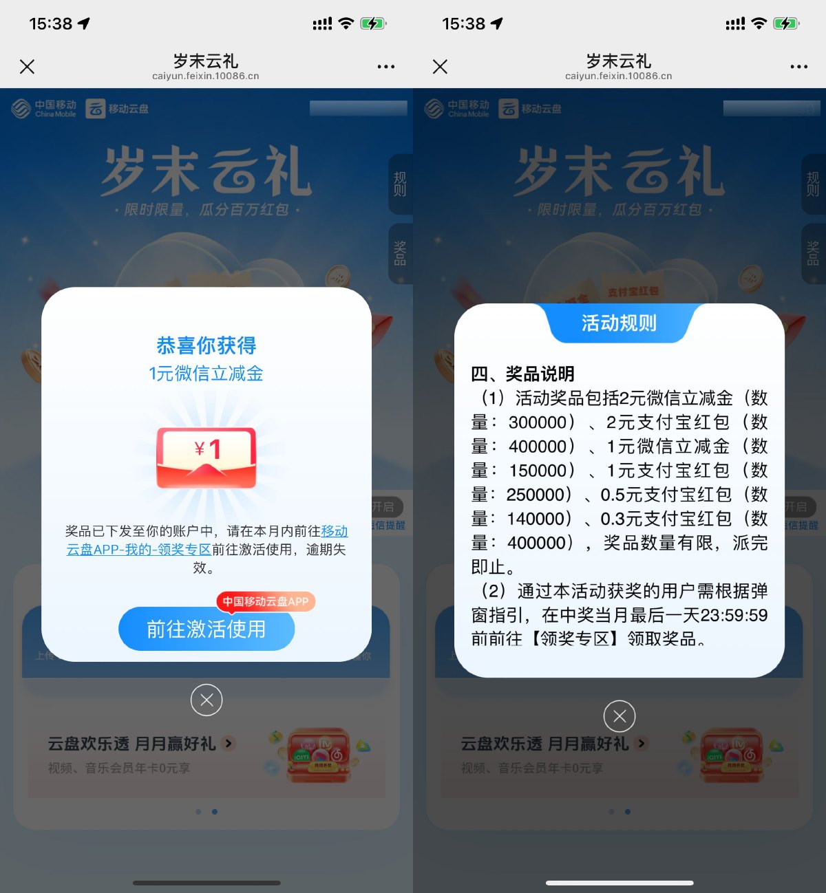 活动地址:https://caiyun.feixin.10086.cn:7071/portal/hcyview/index.html?path=National_AnnualRewarding&sourceid=1002