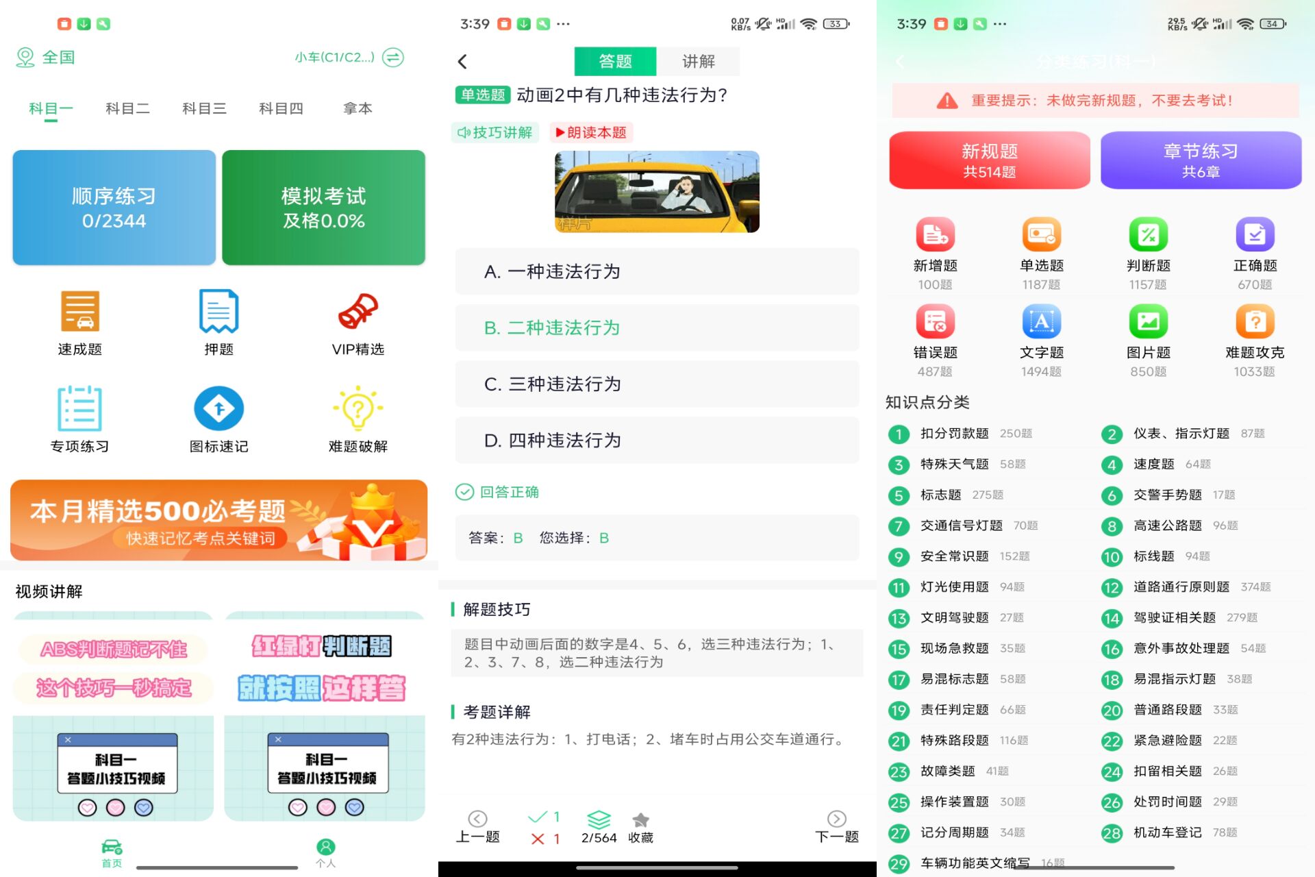 2、内设三力练习和三力模拟测试,满足学员对于不同类型驾照考试的需求;
