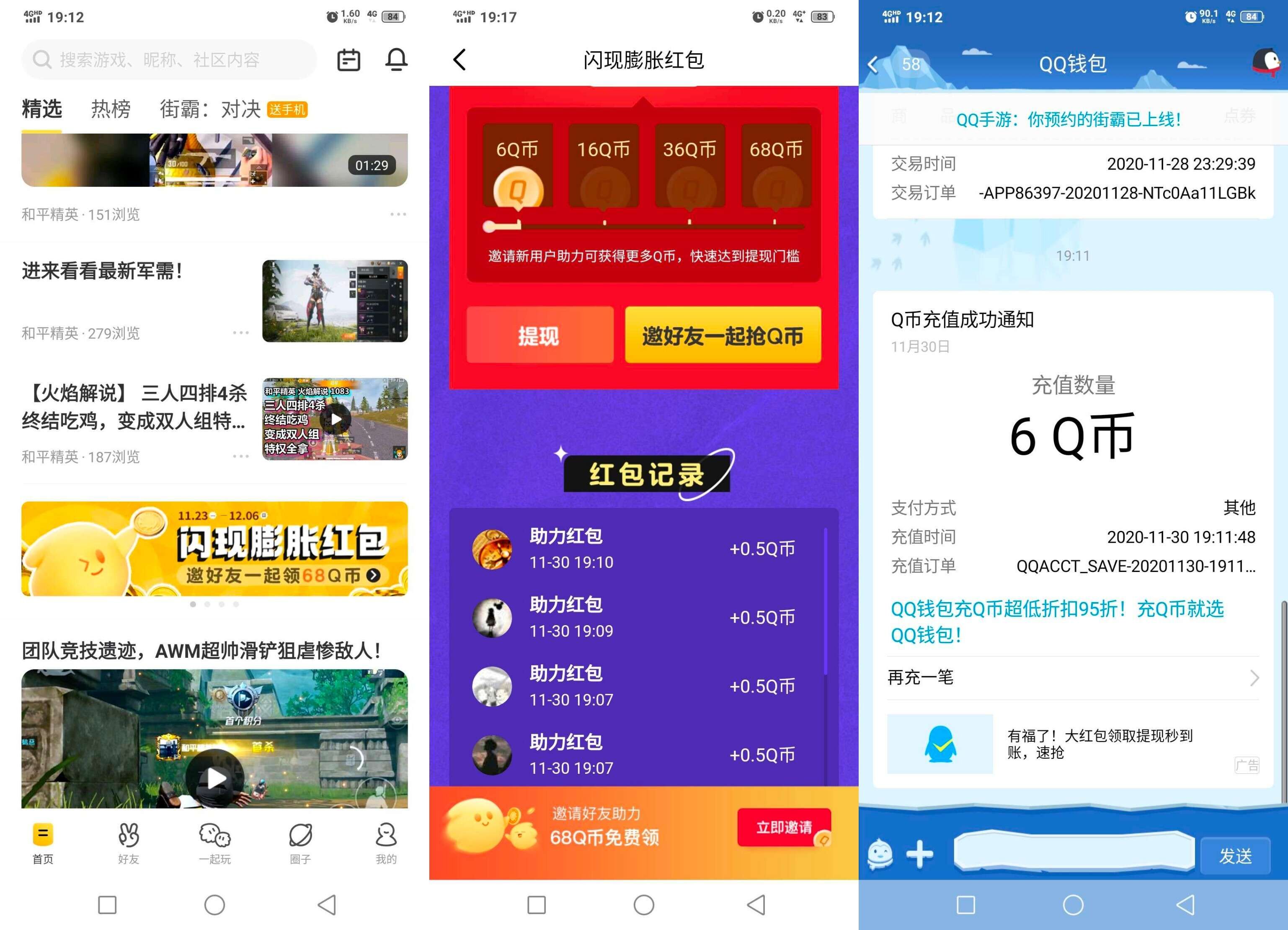 2、进去获得4个QB->然后邀4个好友助力(貌似只有新用户0.5QB,老用户0.2QB)
