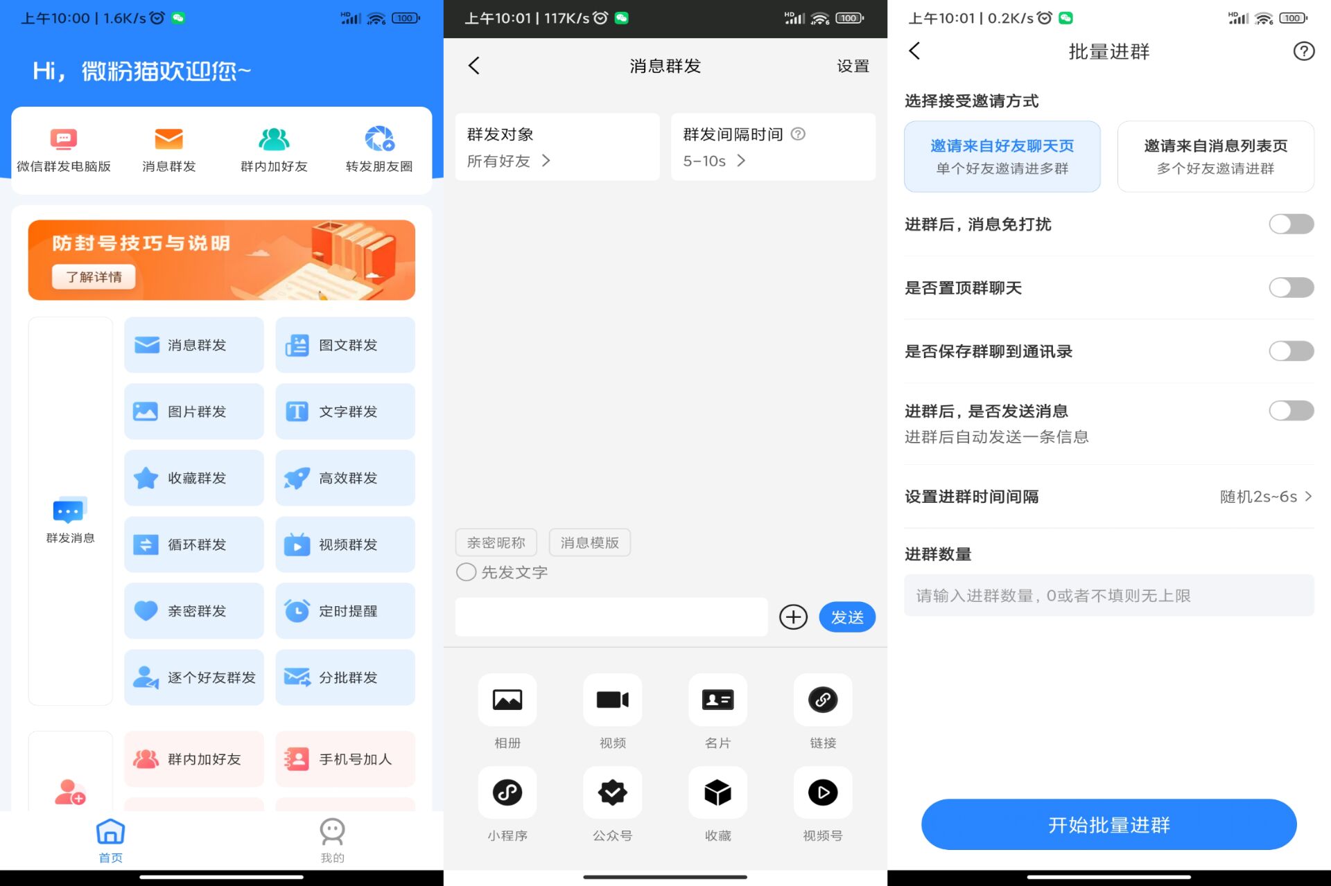 1.群发消息:图文、视频、收藏链接群发等等,解放双手,便捷您的生活;