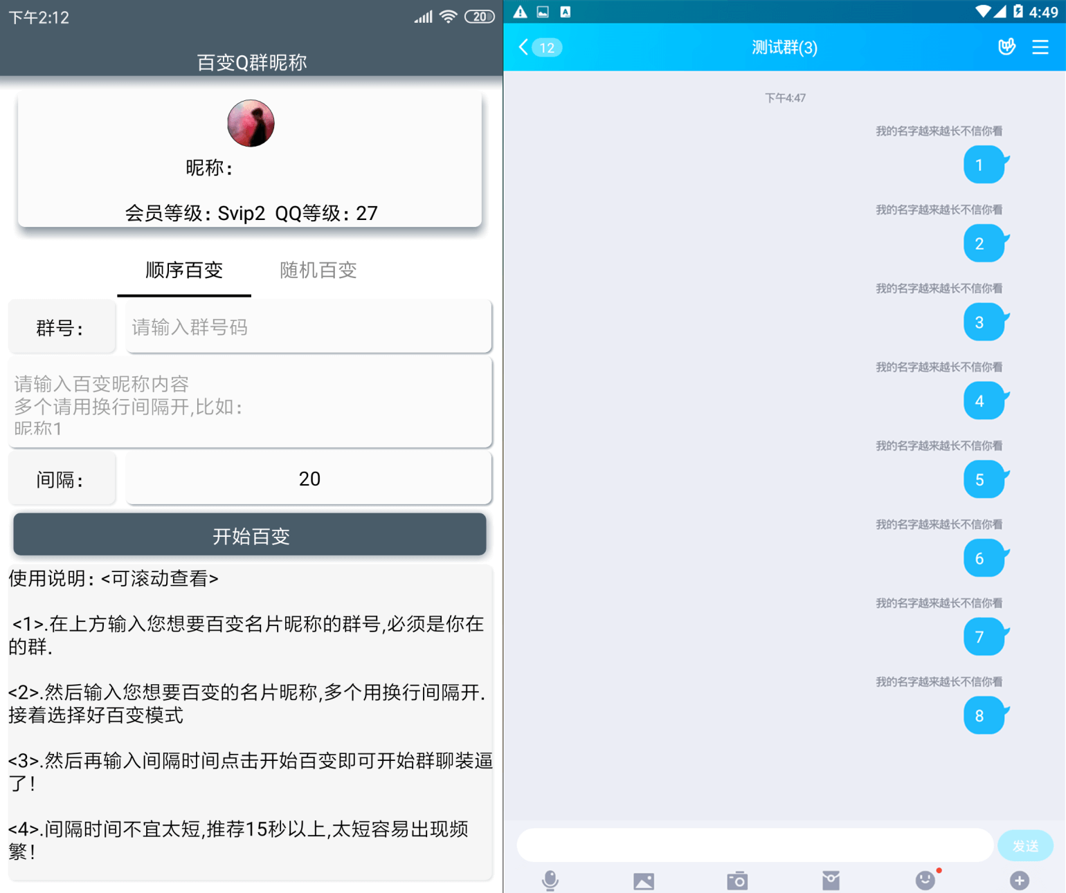 百变Q群昵称最新版3.0APP是款有趣的群名片快捷设置与修改软件。软件能够根据用户的需求对名片进行快速自动修改,群内聊天随时更换群名字,聊天效果更加高端,解锁群聊装13最新姿势。