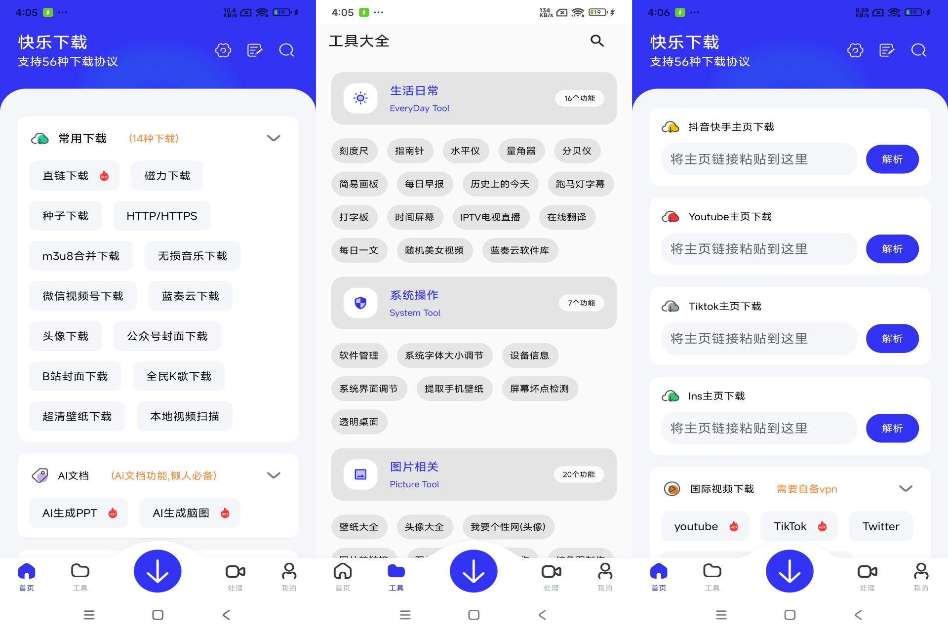 一款超级好用的万能资源搜索下载APP,目前支持56种下载协议,常见的磁力下载、直链下载、蓝奏云下载等统统支持,还包含短视频下载、嗅探下载等功能,漫画、小说、视频等等资源全部都能在这里快速下载。(登录解锁VIP)