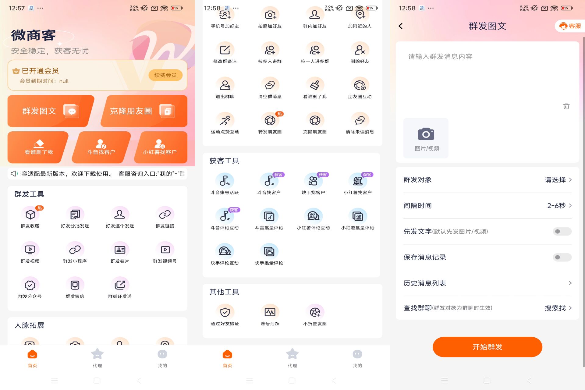一款手机微商客App,微商必备,轻松营销! 提供微商推广、素材分享、朋友圈管理等功能,帮助你提升营销效率,拓展客户资源。 界面简洁,操作便捷,是你的微商好助手!(登录解锁VIP)