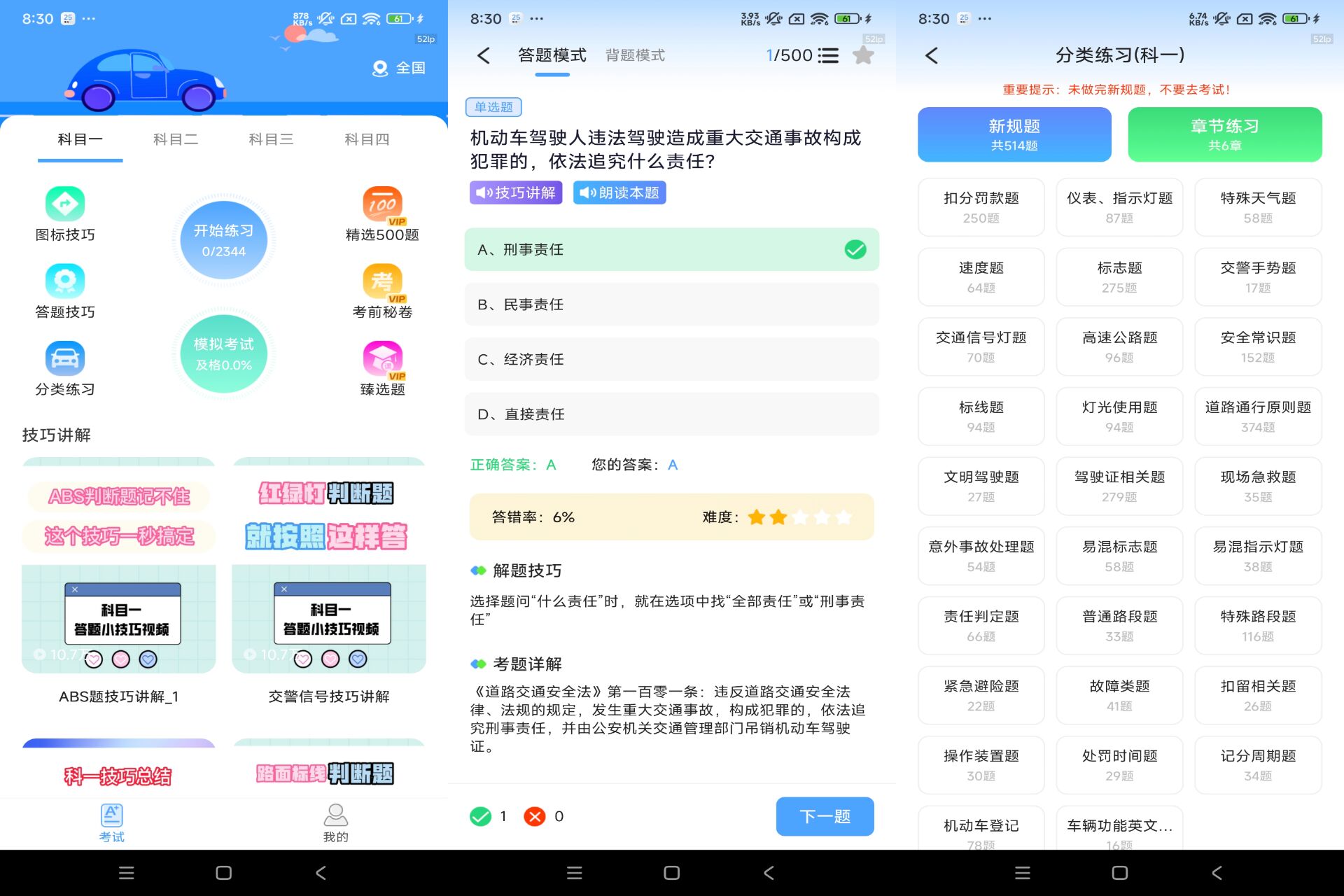 一款手机驾考辅助学习工具App,驾考必备,轻松过关! 提供驾考科目一至科目四的题库、模拟考试、技巧讲解等,帮助你轻松备考,顺利通过考试。 界面简洁,操作便捷,是你的驾考助手!(解锁VIP功能)