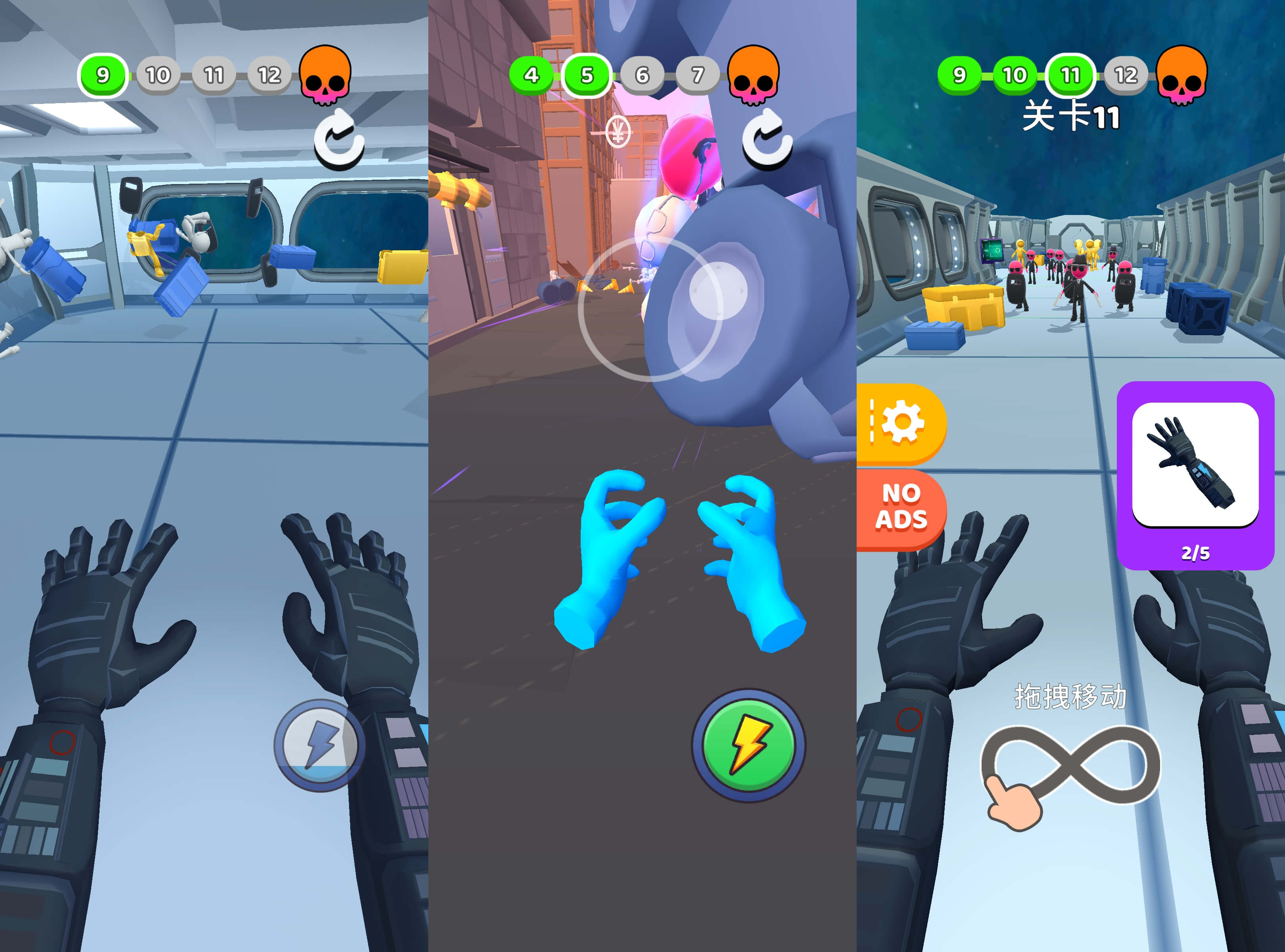1、玩家需要控制双手来完成闯关的任务,依靠你的个人操作能够消灭对手;