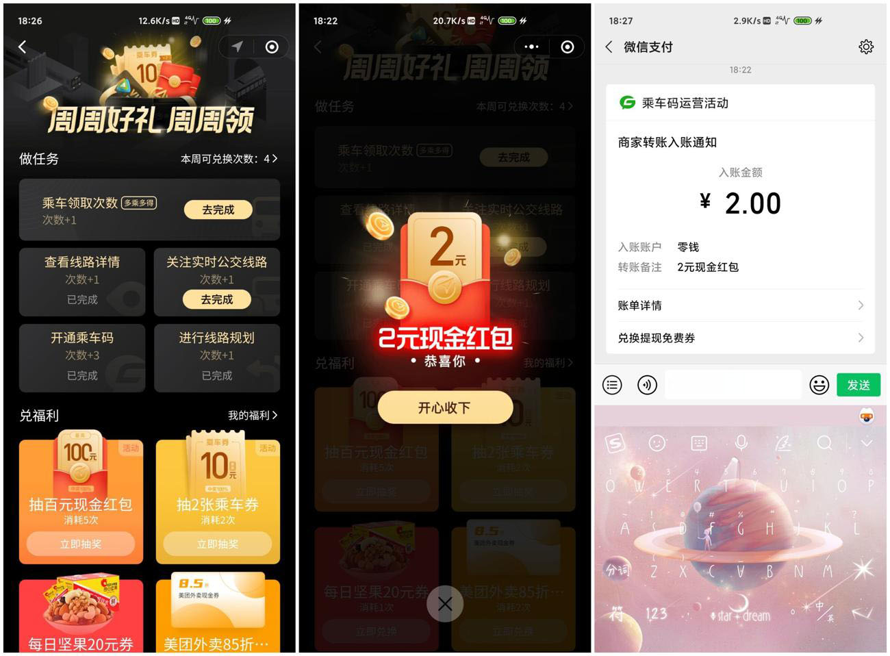 腾讯乘车码领取2元微信零钱