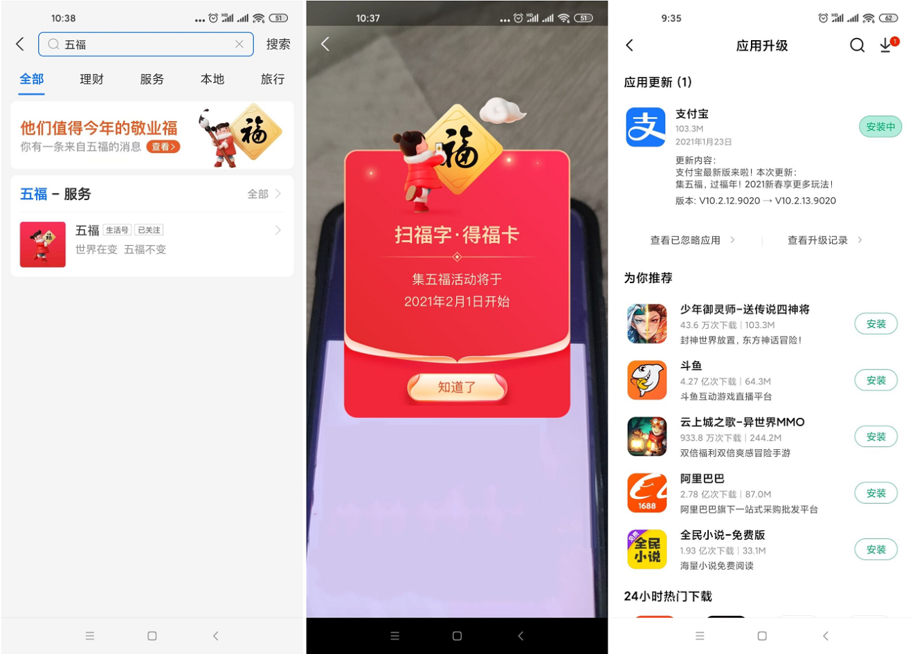 今天应用商店的支付宝APP已更新,开始预热啦!玩法将于1月25日上线,活动将于2月1日正式开始,具体还是以支付宝通知为准,但是今年的“敬业福”有些特殊。中国医师协会健康传播工作委员会邀请全国医务工作者共同写下最美“敬业福”,利用图像合成技术汇聚成一个特殊“福”字,通过春节的集五福送出。这既是向中国所有医护致敬,也为祈愿所有人来年平安健康!