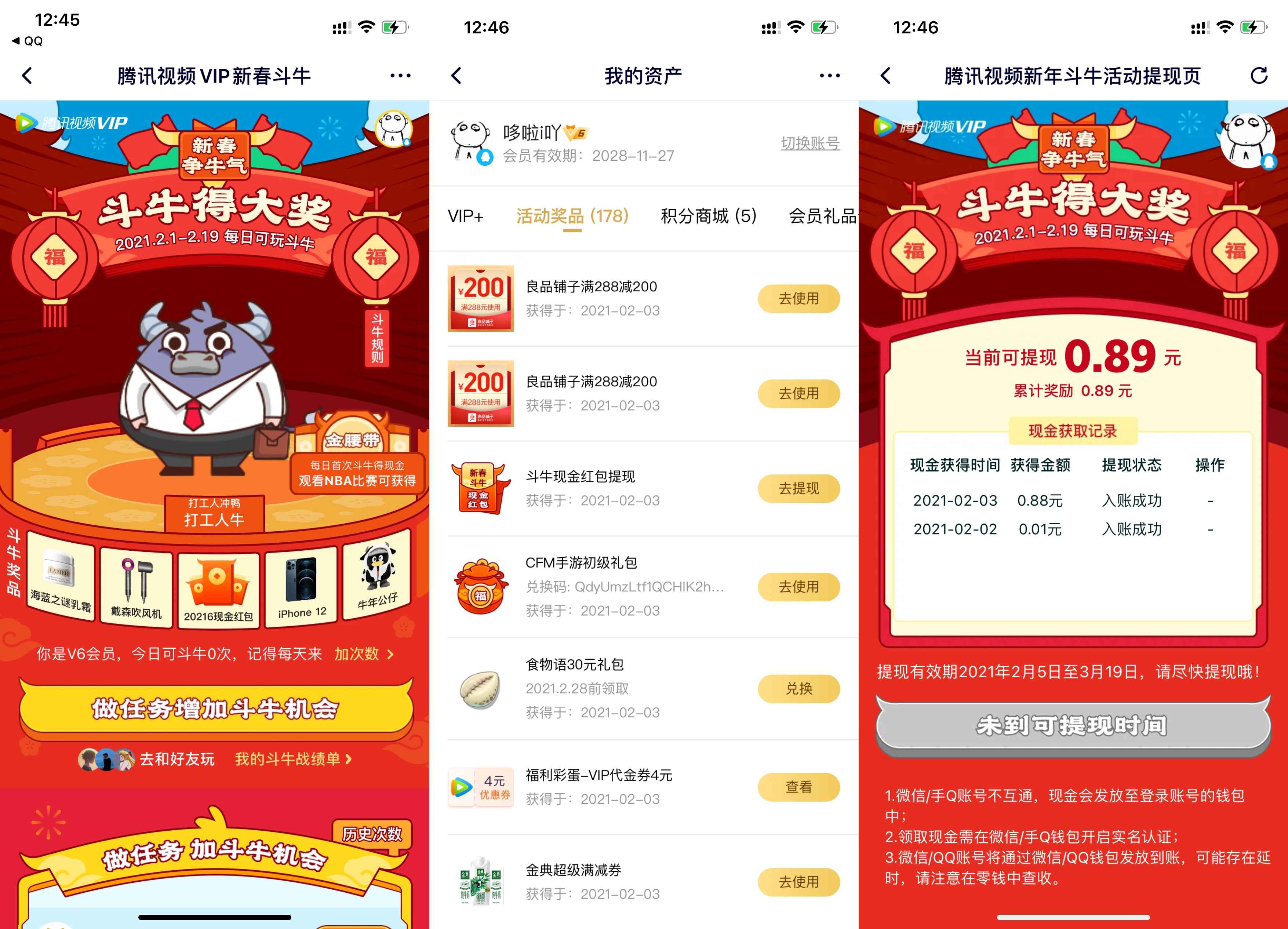 3、抽中的红包在->我的斗牛战绩单->我的活动奖品->2月5日开始提现