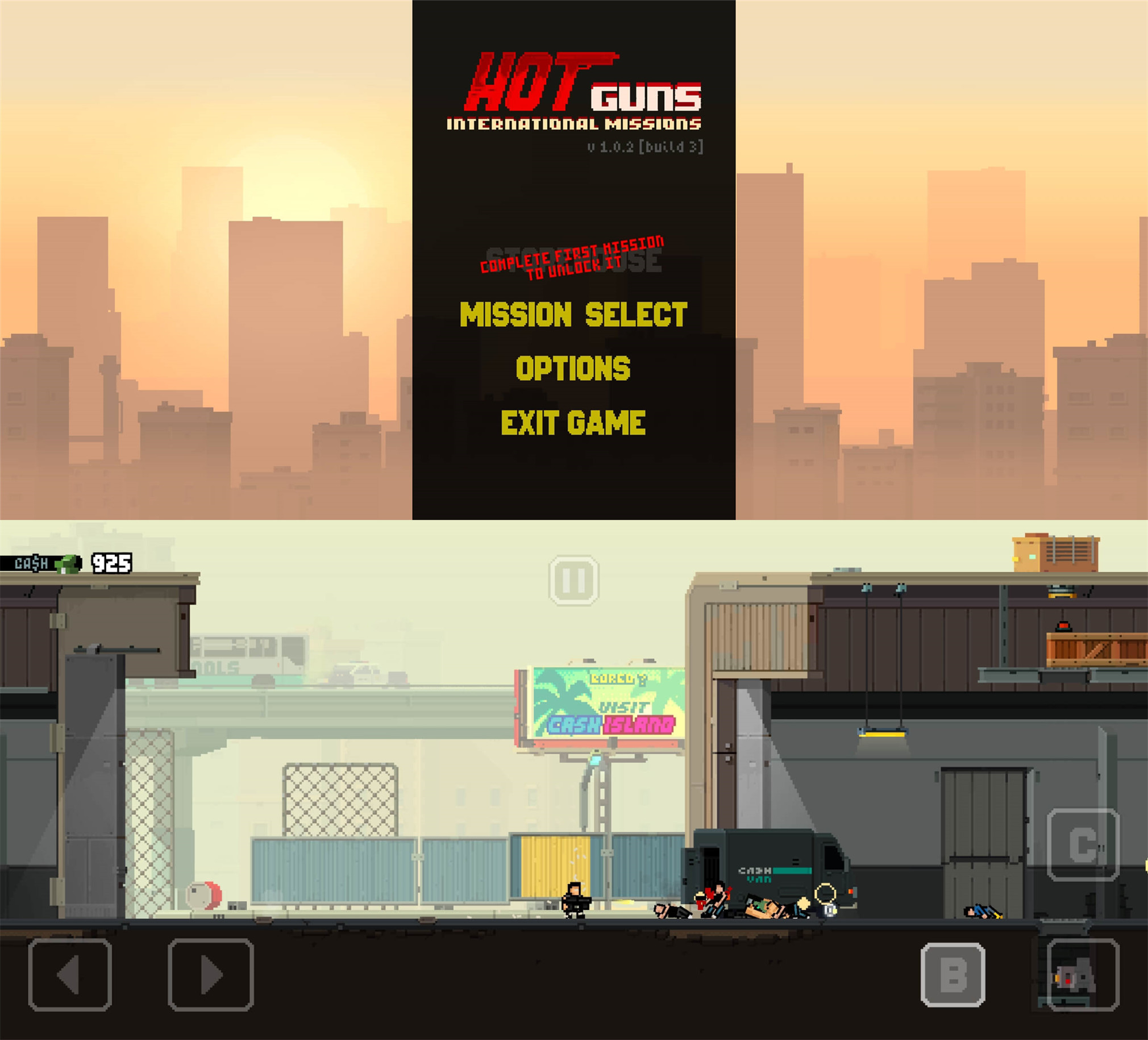 像素风格的射击游戏,操作简单,容易上手,虚拟按键控制