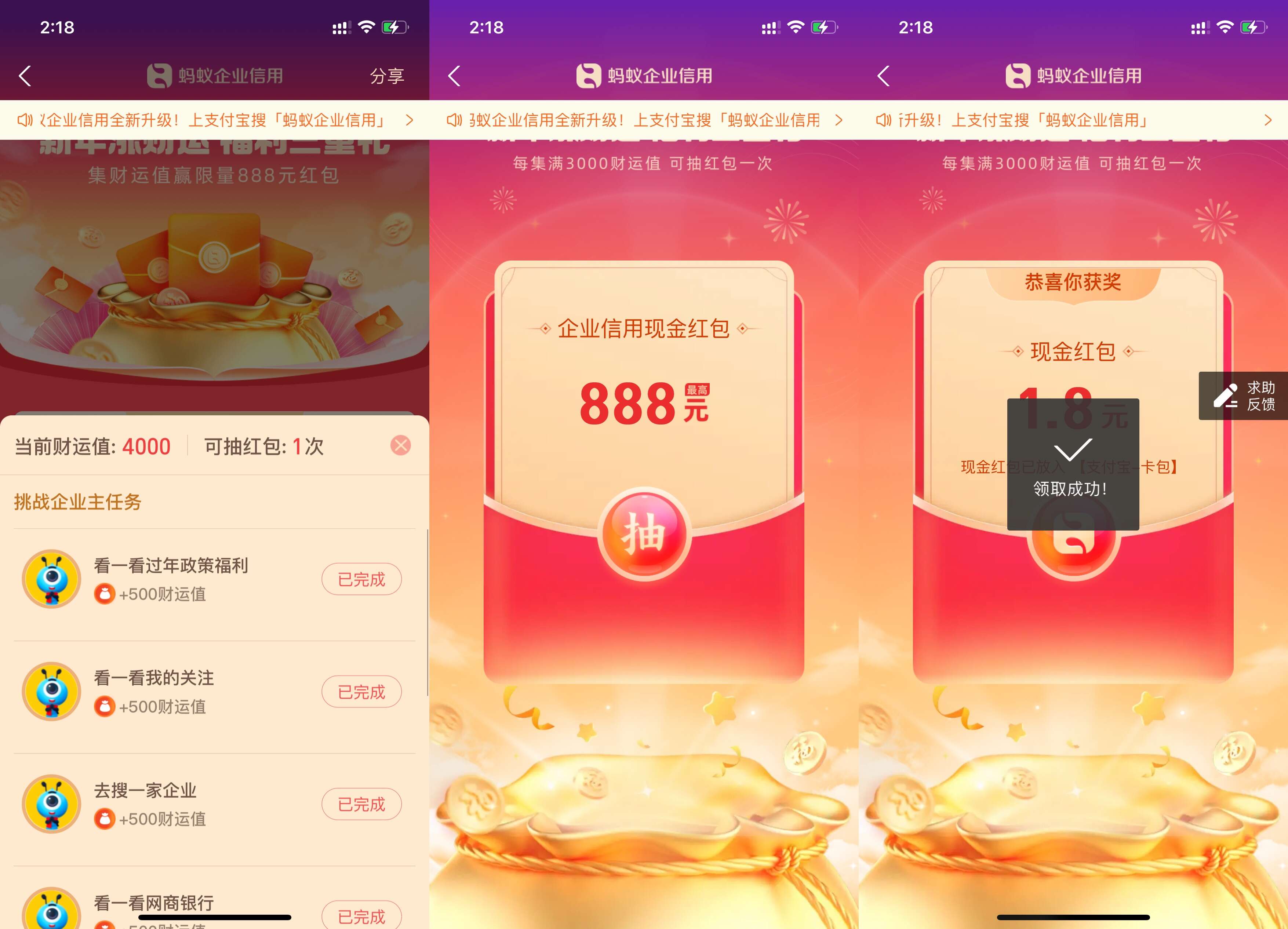 支付宝蚂蚁企业信用领无门槛红包