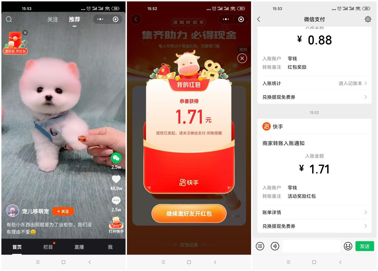 微信小程序搜索“快手短视频”->点左上角开红包->进去分享两个人助力->然后返回再次进入活动自动提现秒到!