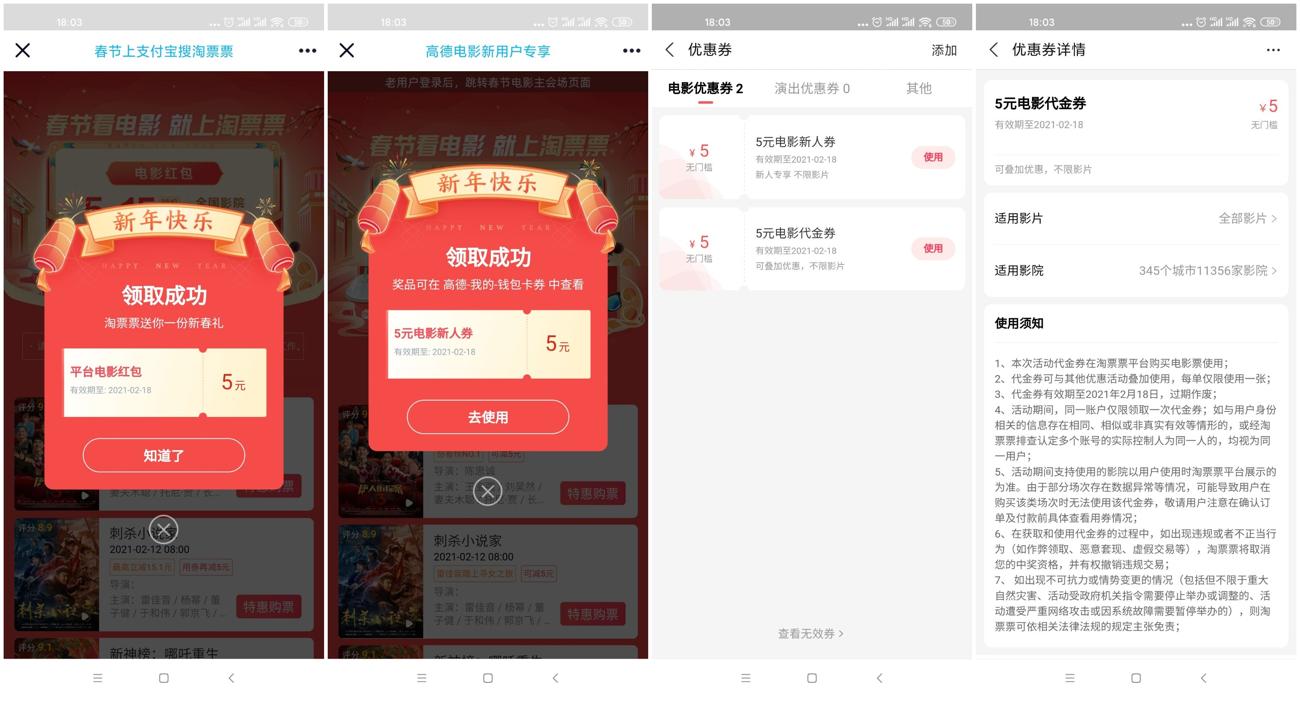 打开地址领取成功后->支付宝搜索“淘票票”->我的->优惠券即可看见->有效期到2月18日