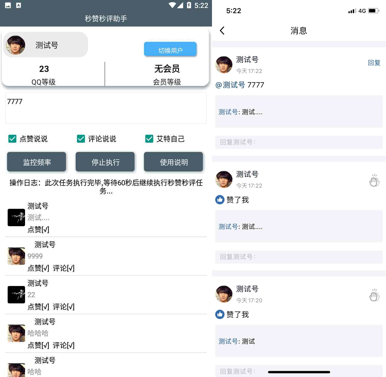 扣扣空间秒赞秒评助手4.0最新版来啦,实时监听空间好友动态!不错过每一条说说,当好友发表说说时软件会在几秒内马上点赞、评论,空间达人挂机秒赞秒评必备神器。