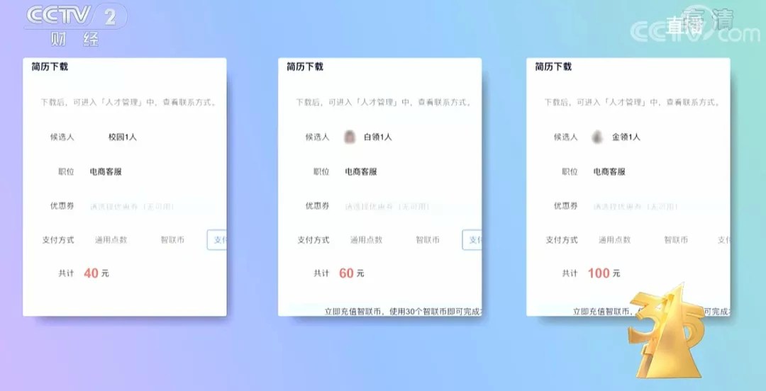 按智联的说法,简历共有 3 个档位:40 元、60 元、100 元。分别对应校园、白领、金领。