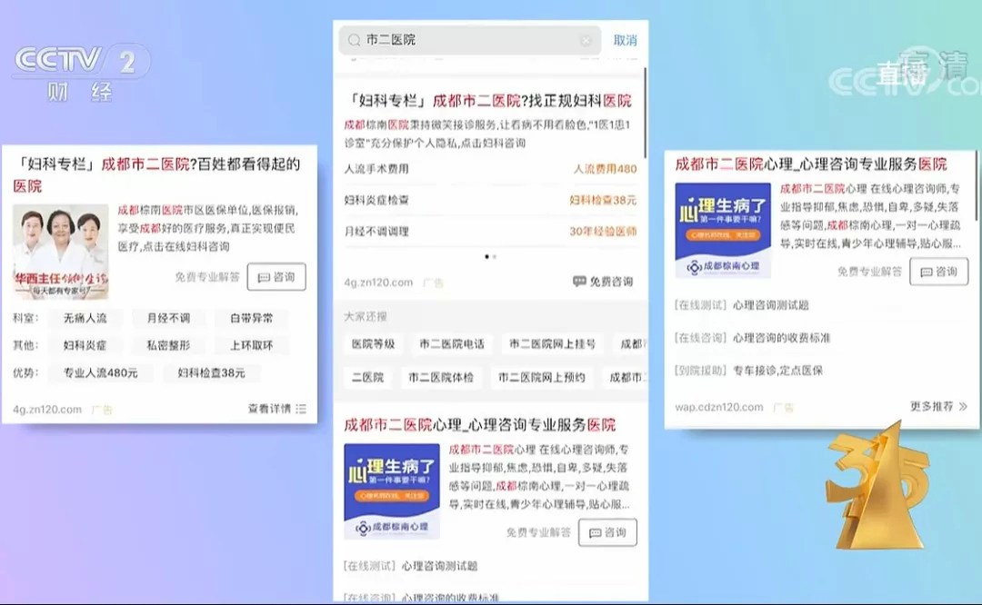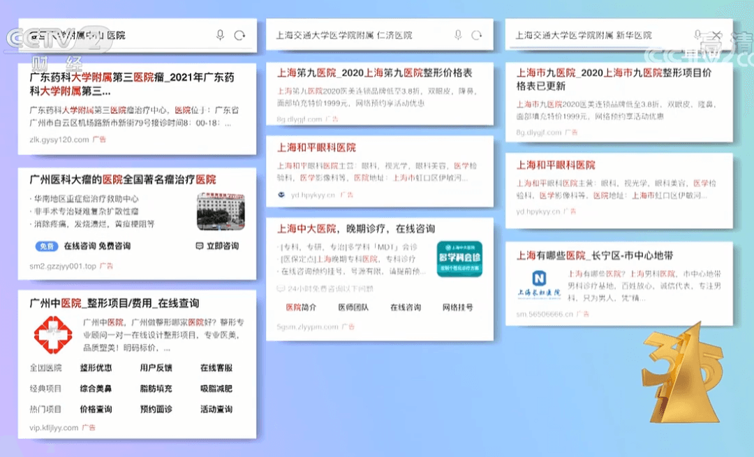 为了赚更多的钱,这两家搜索引擎仅将公立医院的全称进行搜索保护,简称则当做关键词进行售卖。