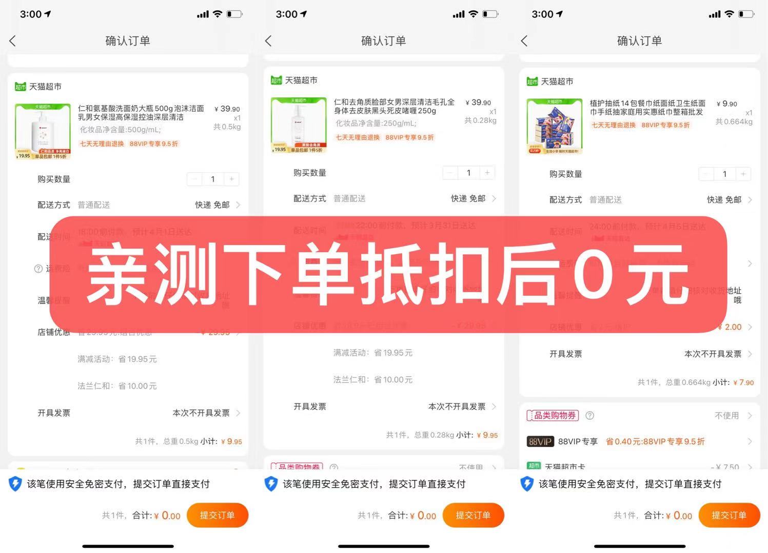 2、再打开包邮地址选择商品下单就会抵扣10元0撸->全程3分钟搞定 简单!