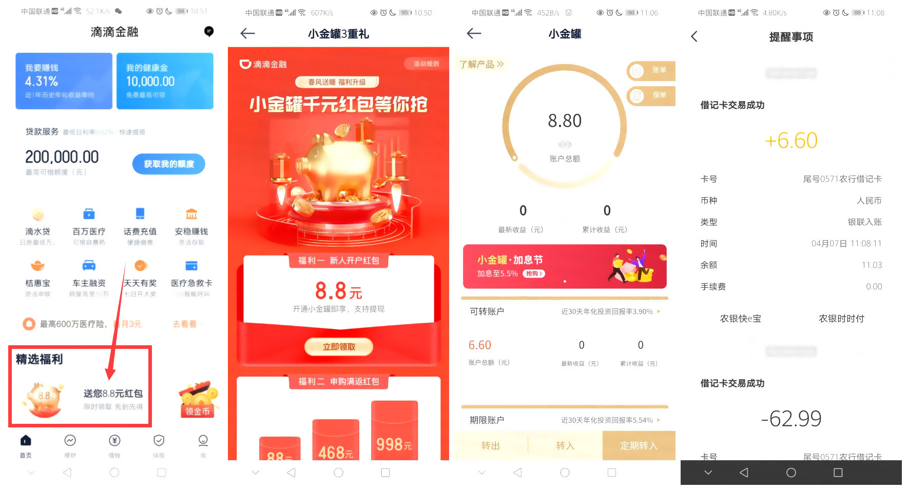 1、应用商店下载“滴滴金融”->首页下面有显示“送你8.8元红包”->没有说明没资格