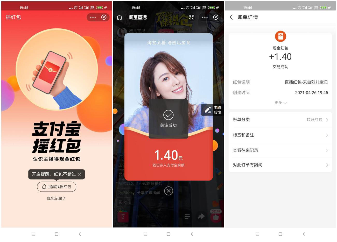 1、支付宝扫码进去->摇一摇手机->关注主播中了红包秒到