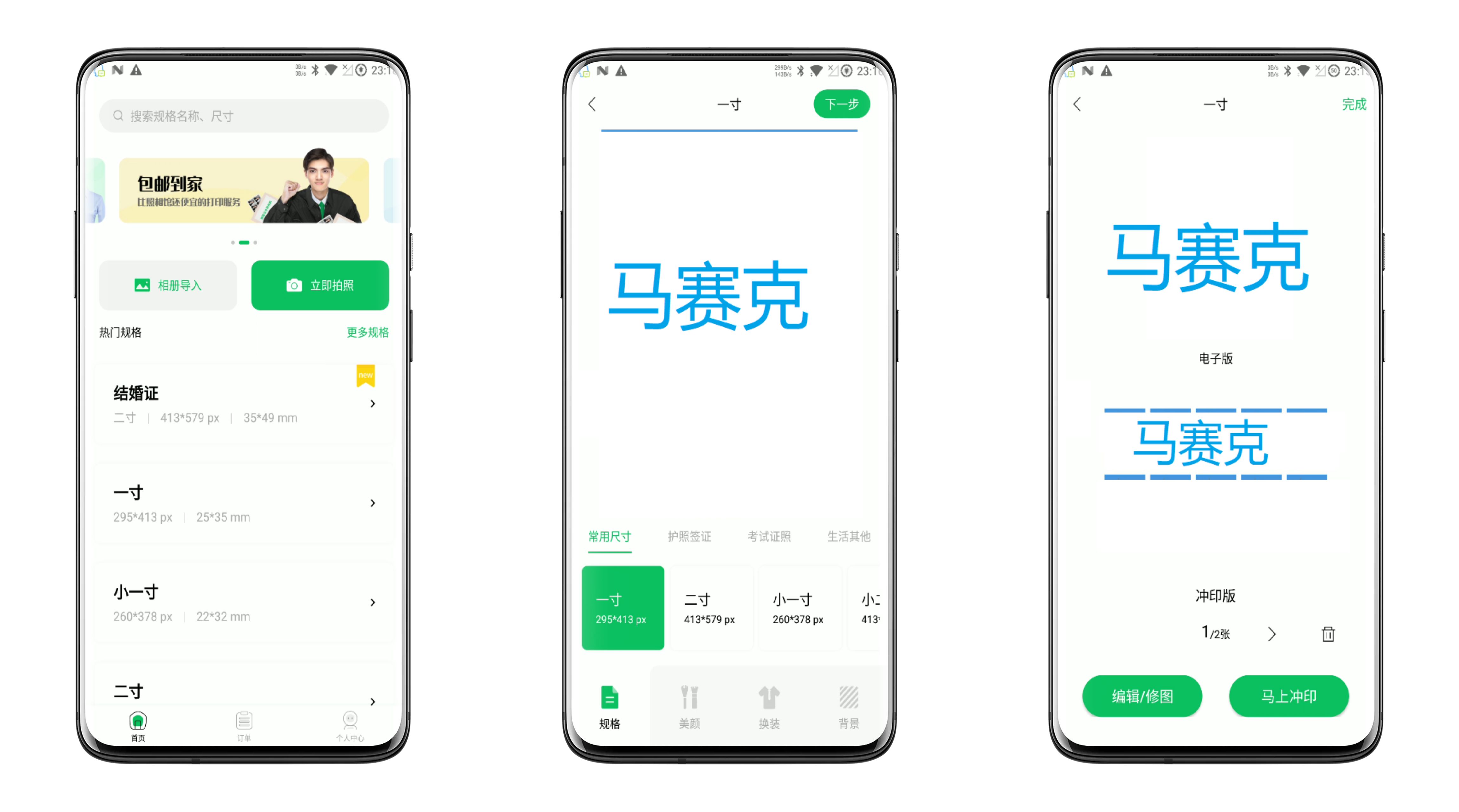 支持市面上数百种证件照尺寸及底色要求,可拍出各种尺寸证件照,证件照底色也可任你切换!