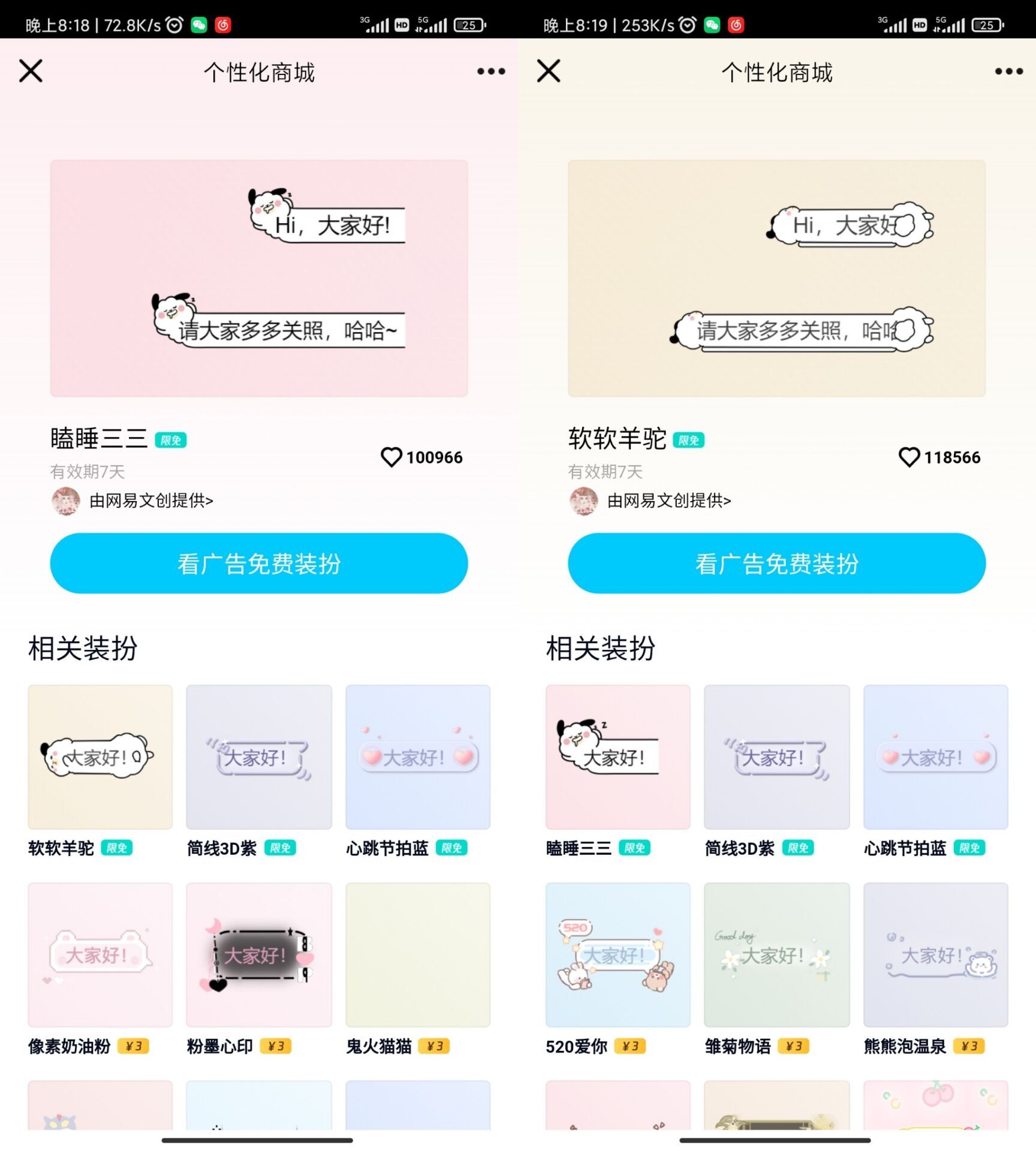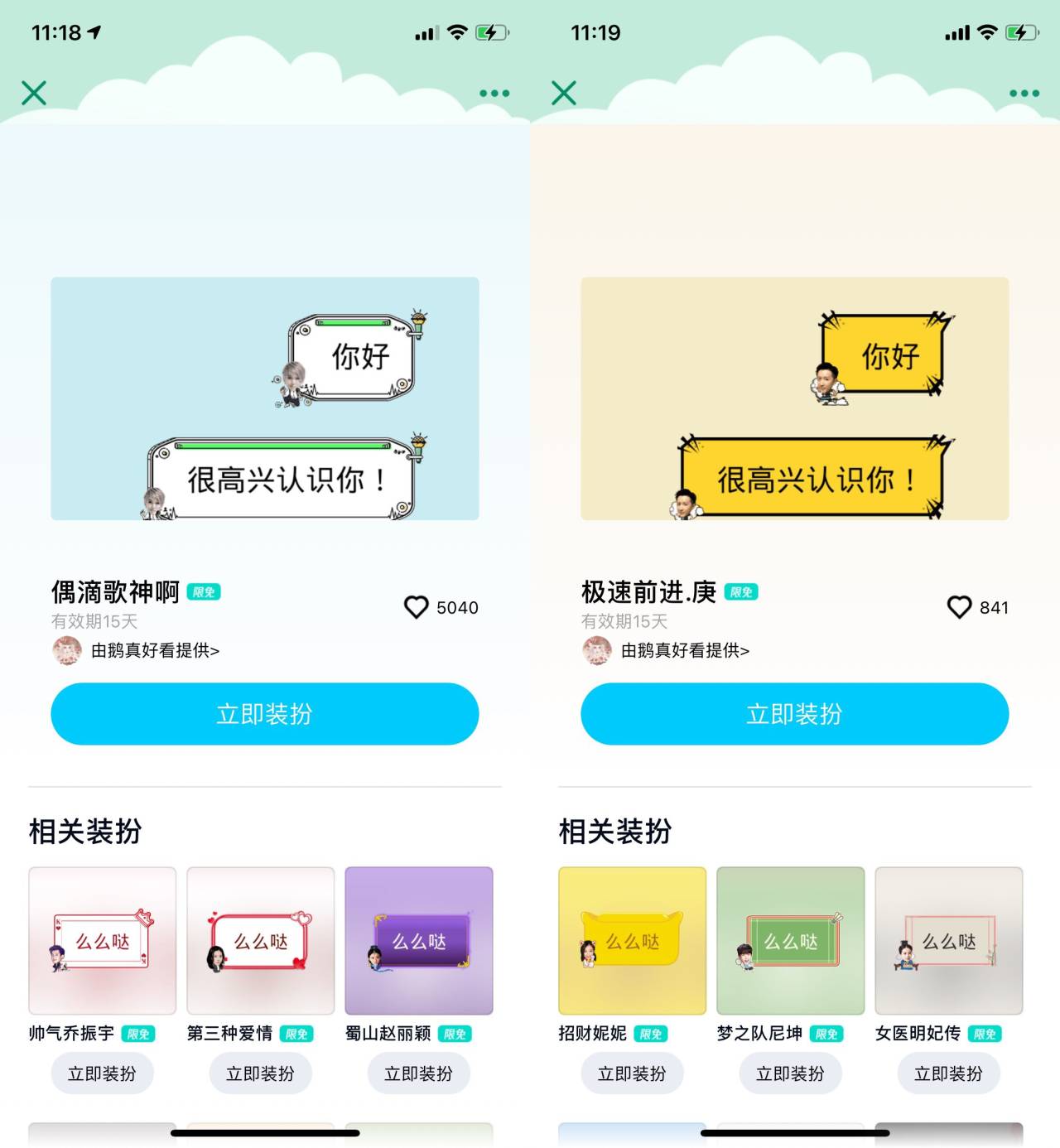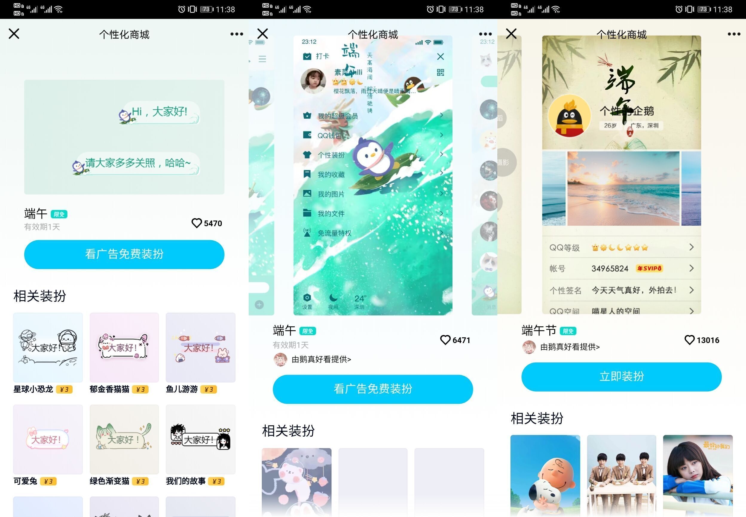 QQ中秋限免两款气泡->打开观看广告设置->非常的阔爱!