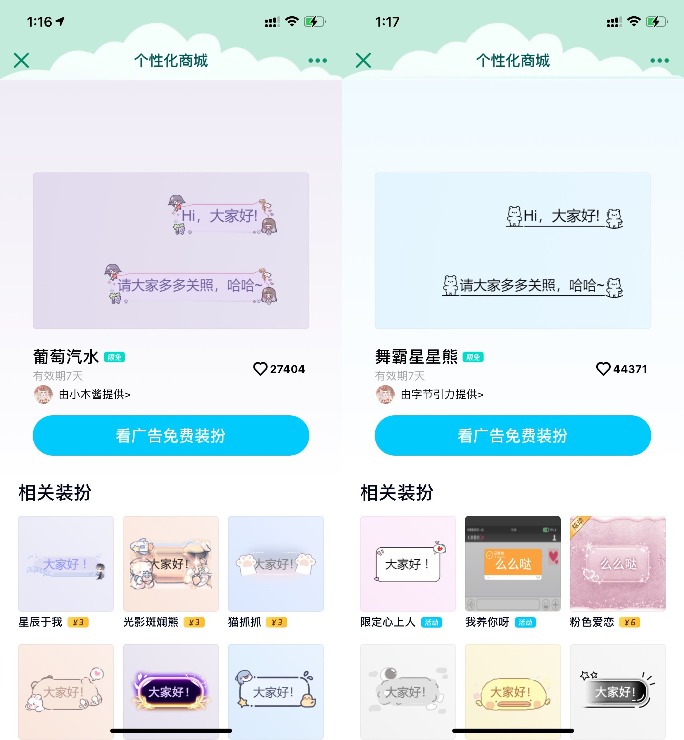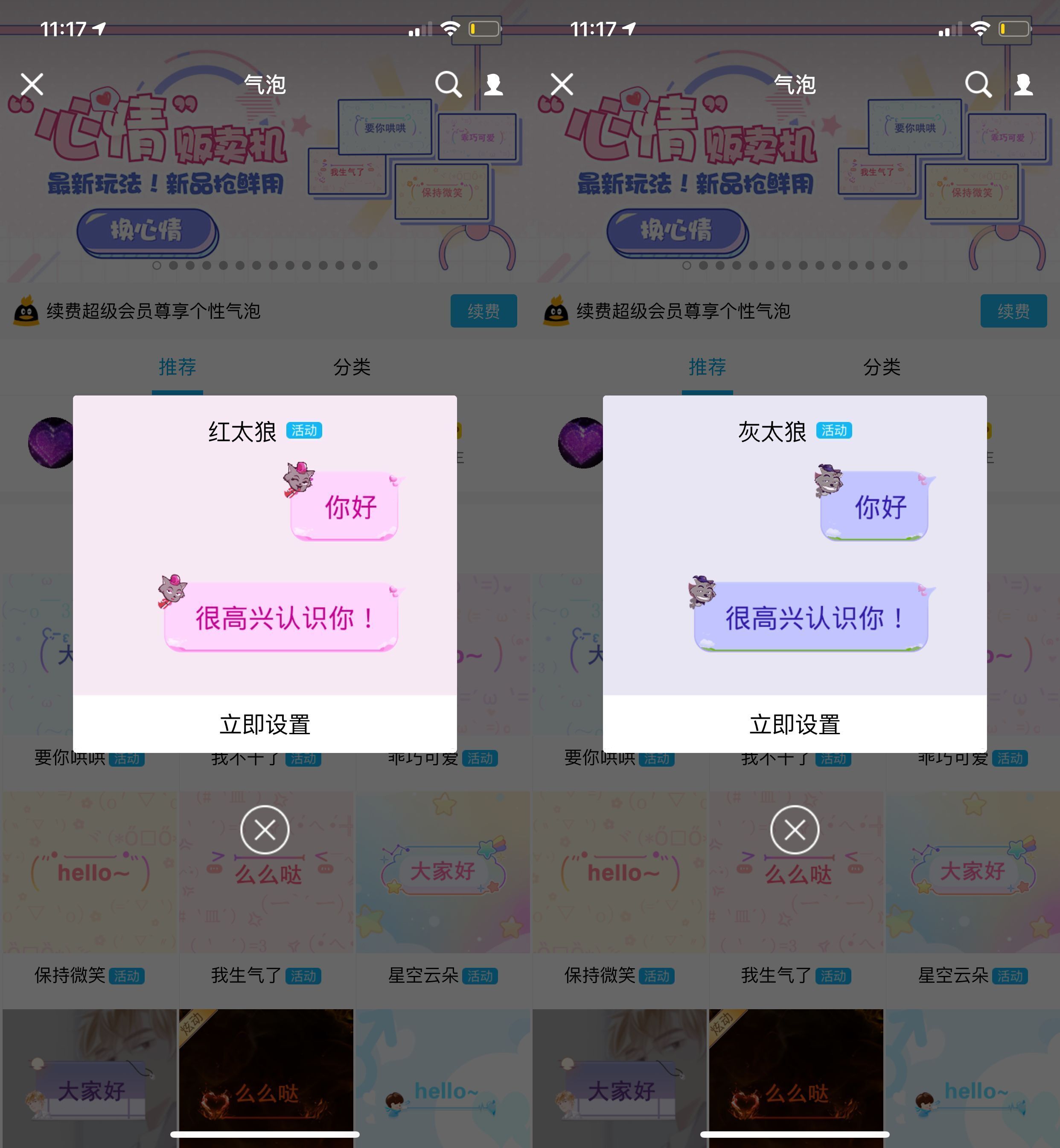 【新一期免费设置气泡】葡萄汽水”气泡和“舞霸星星熊”气泡->打开看个广告即可装扮~