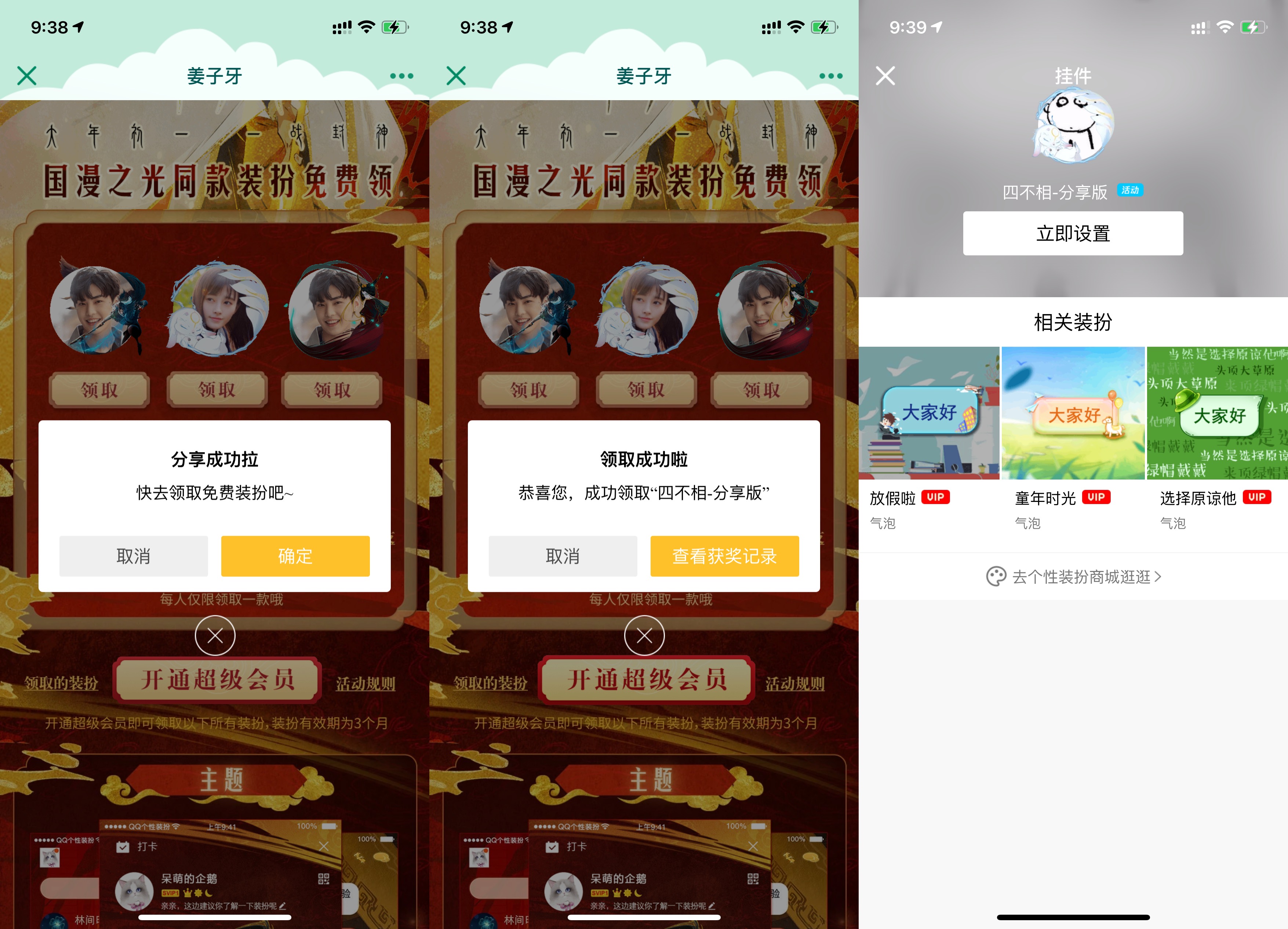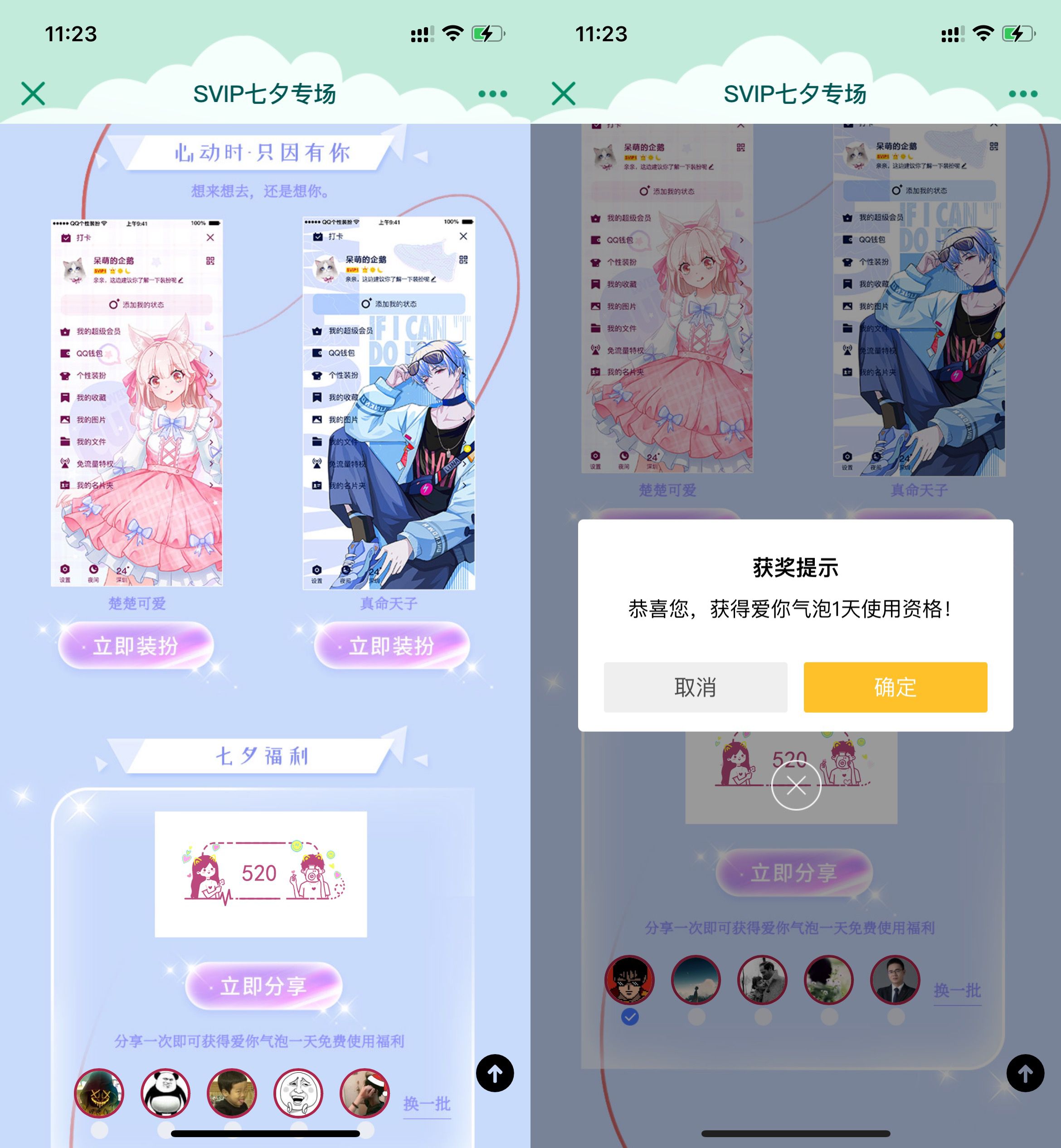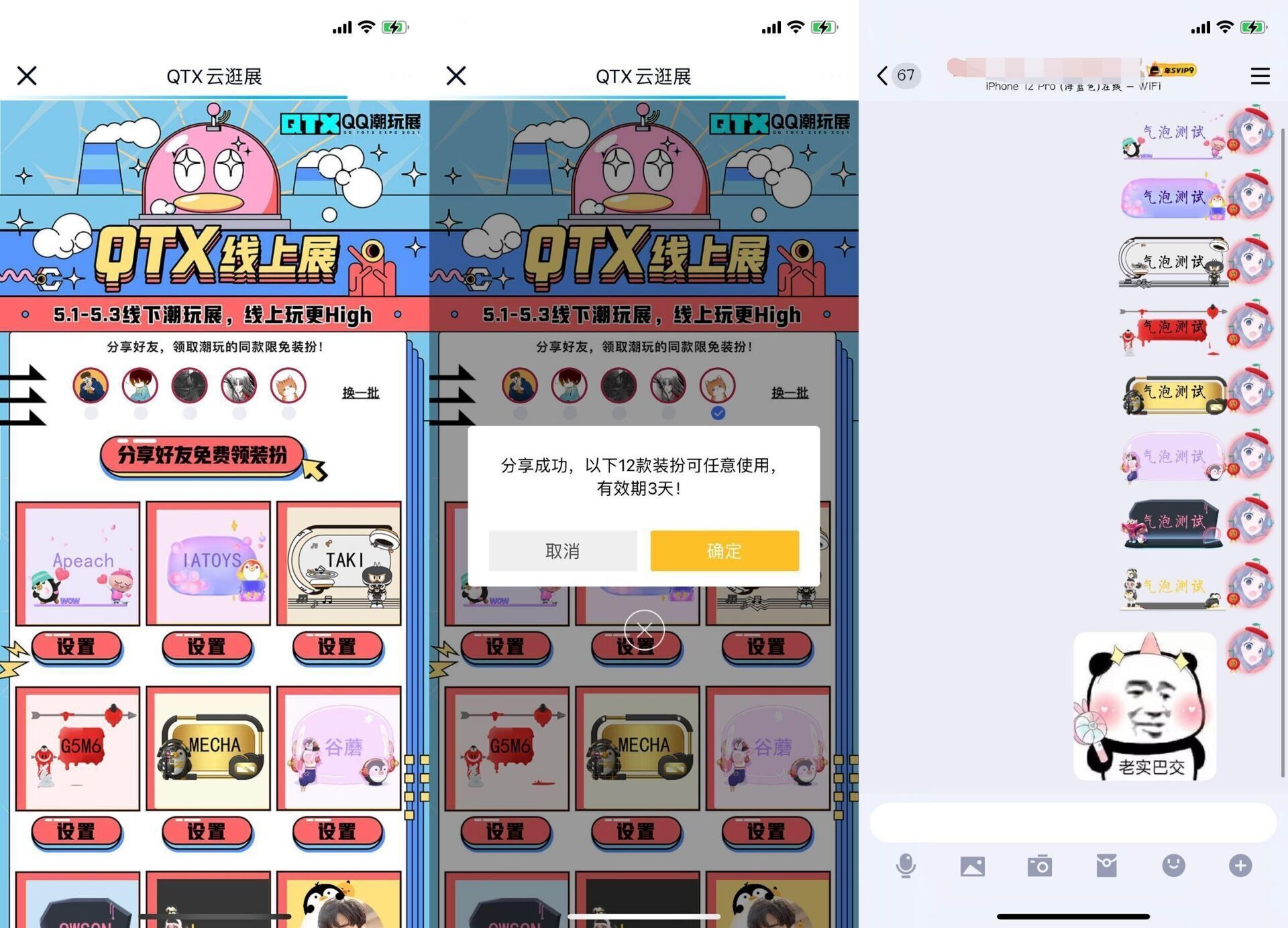 【新一期QQ免费领气泡+四款挂件】打开链接之后分享就可以设置!