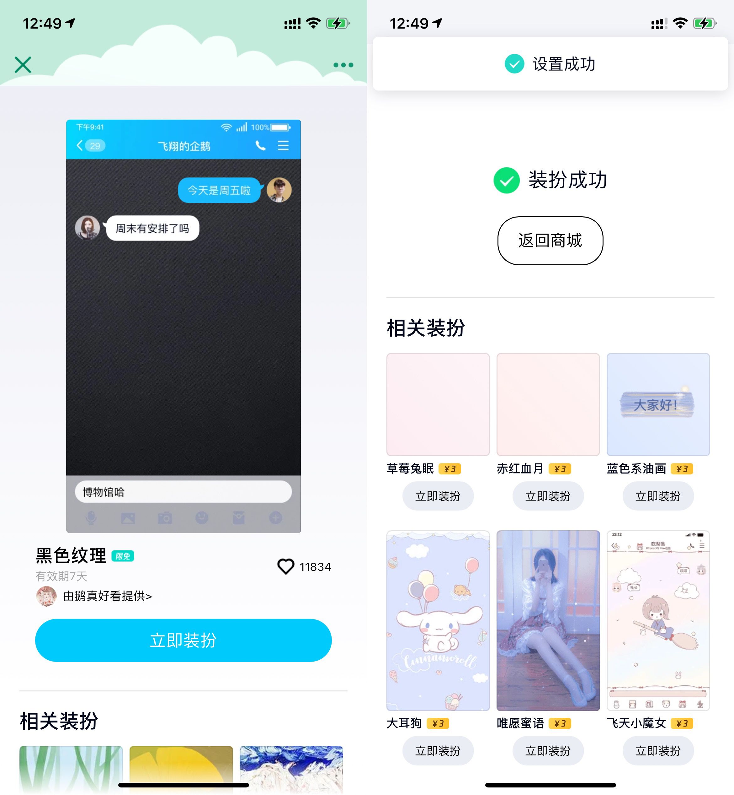 QQ免费设置聊天背景图“黑色纹理”->打开直接设置装扮即可!