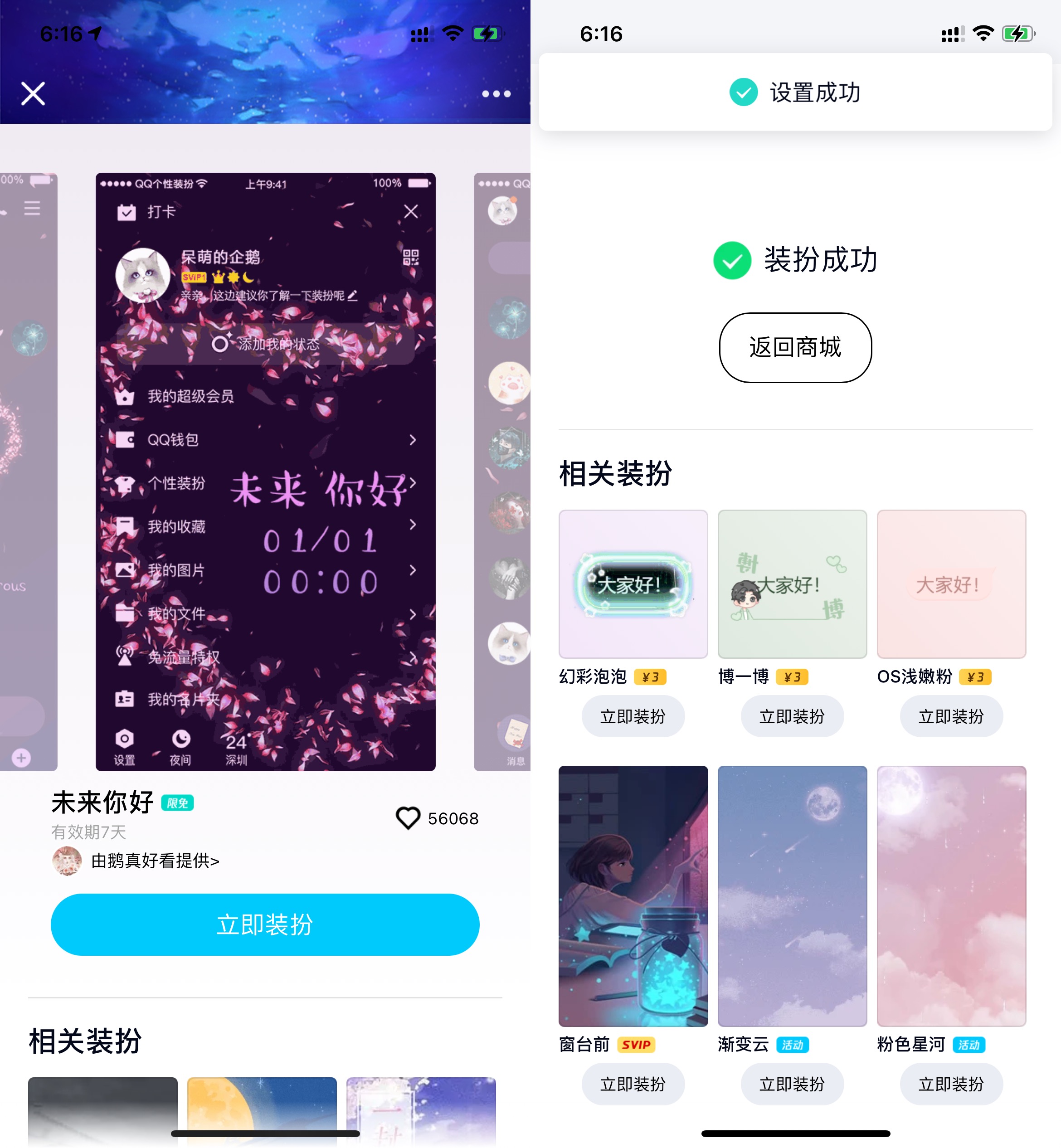 QQ最新一期免费设置好看主题->“未来你好”主题->打开下方链接点击“立即装扮”就可以了 有效期7天 到期不换应该是永久!
