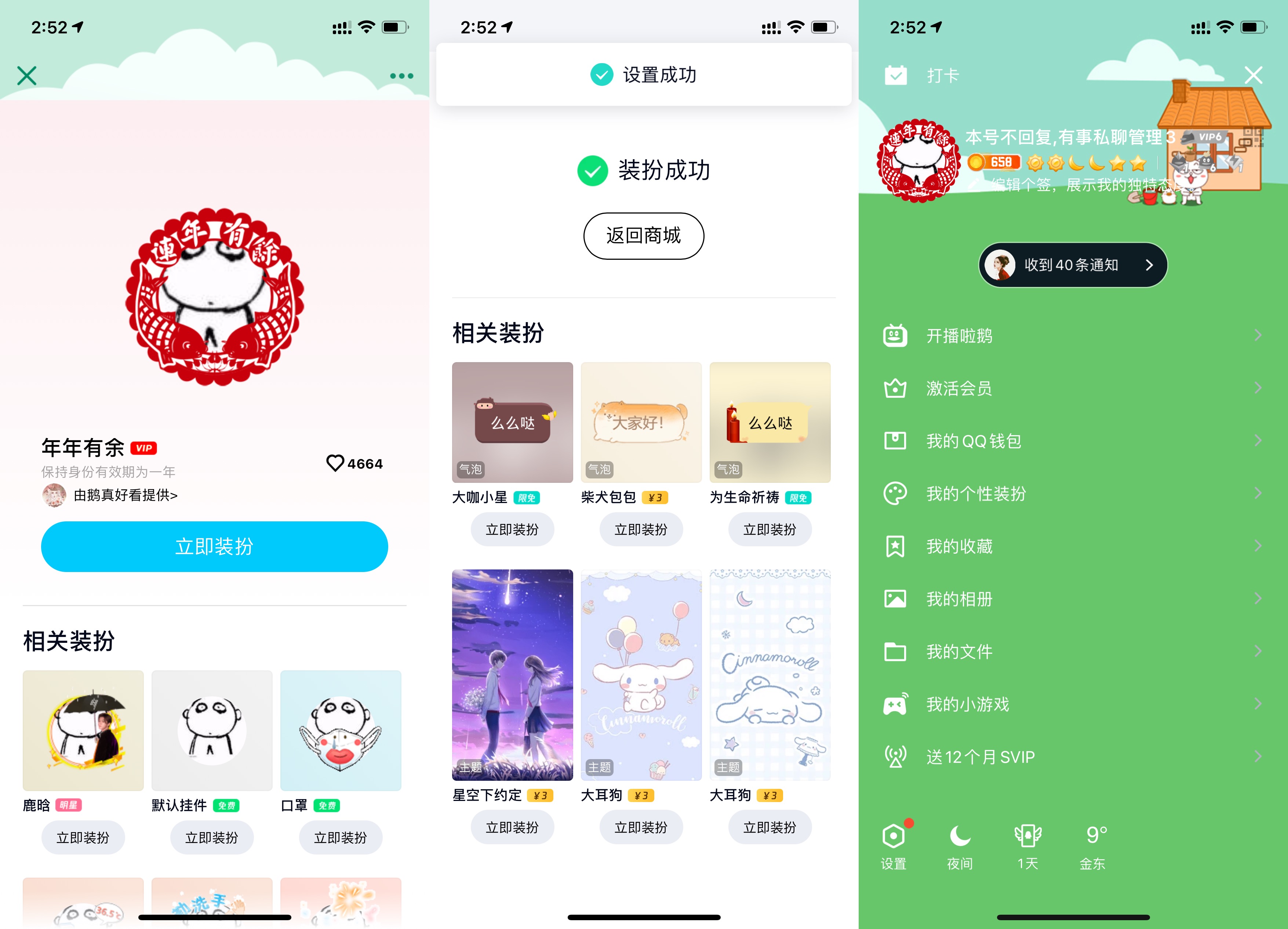 QQ最新一期免费设置BUG挂件->“年年有余”挂件->打开下方链接->无视VIP标识 点击“立即装扮”即可